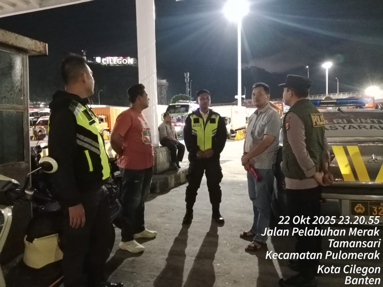 Cilegon - Personil Polsek Kskp Merak Polres Cilegon melaksanakan patroli di kawasan pelabuhan merak memberikan rasa aman dan damai, Kamis (23/10/2025)