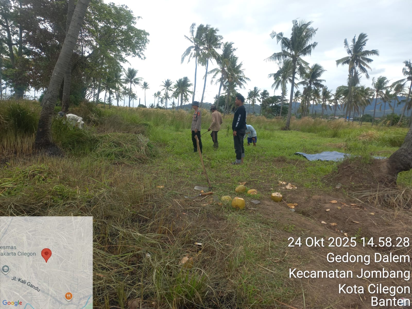 Cilegon - Melaksanakan program pemerintah, penanaman jagung dalam program ketahanan pangan, personil Polsek Kp Merak Polres Cilegon Polda Banten melaksanakan kegiatan peninjauan serta monitoring lokasi yang nantinya akan ditanami bibit jagung unggul di Desa Mangkunegara Kecamatan Bojonegara, Kabupaten Serang, Jumat (24/10/2025).