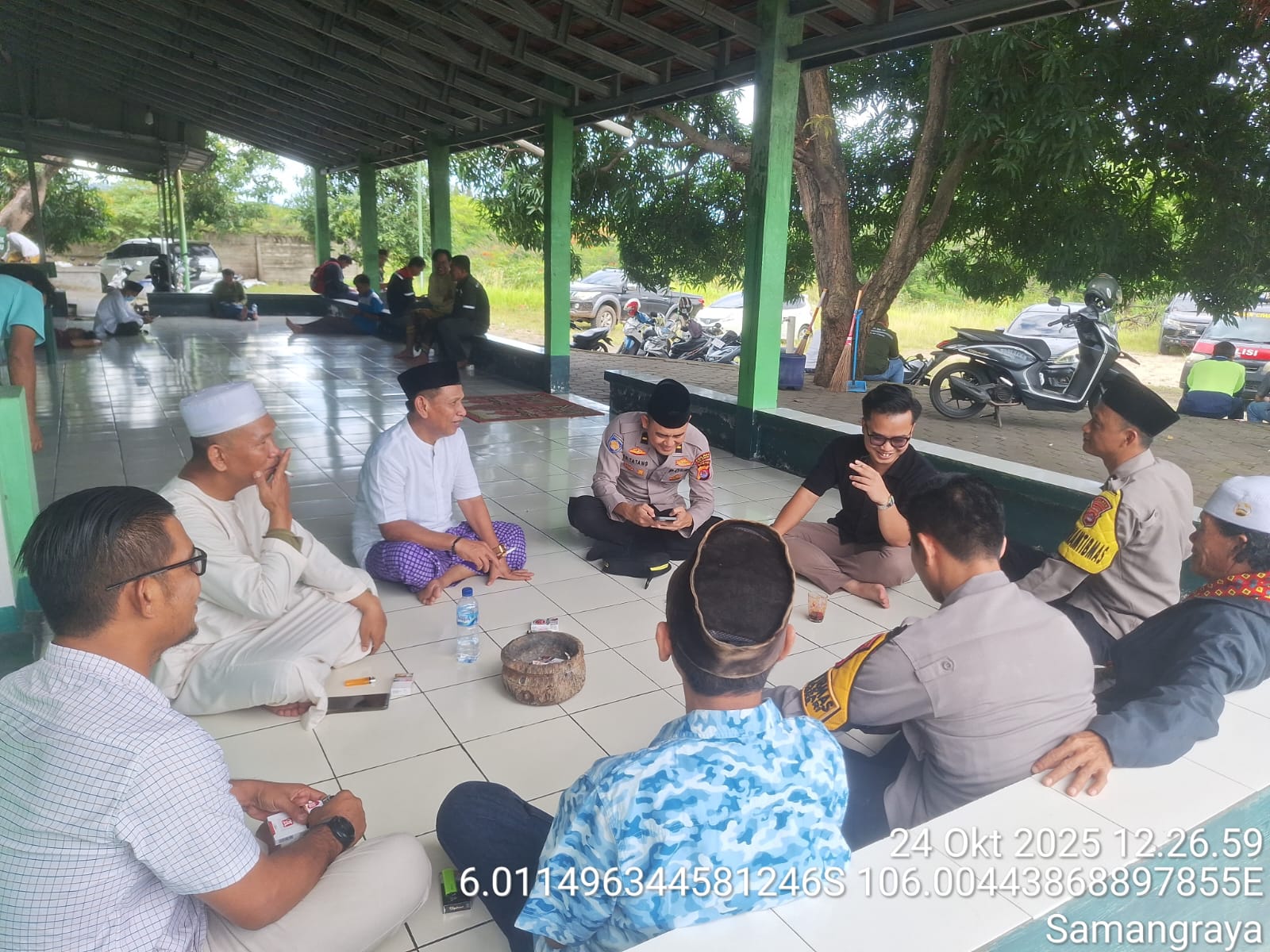Cilegon - Guna memastikan Harkamtibmas tetap berlangsung aman kondusif,Bhabinkamtibmas Polsek Ciwandan Polres Cilegon Polda Banten menyambangi DKM pengurus Masjid Usai Sholat Berjama’ah,Jum’at (24/10/2025).