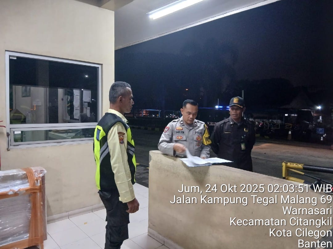 Cilegon - Demi Menjaga keamanan Daerah Hukum Polsek Ciwandan agar tetap kondusif, Personil Polsek Ciwandan Polres Cilegon Polda Banten Melakukan kegiatan sambang kamtibmas Dan Patroli Bersama Security, Sabtu (25/10/2025).