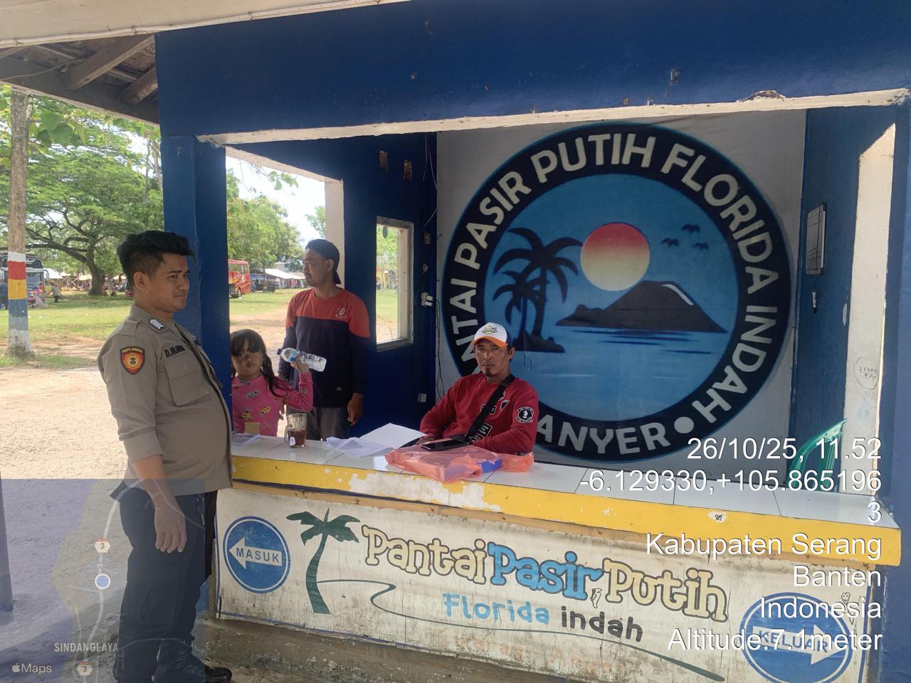 _*POLRES CILEGON*_ | Polsek Cinangka Polres Cilegon Polda Banten melaksanakan kegiatan patroli Serta memberikan Himbauan kepada pengunjung pantai yang berwisata dan Sambang kepada petugas penjaga pantai dan juga antisipasi harkamtibmas di Wilayah Hukum Polsek Cinangka Polres Cilegon Polda Banten, Minggu (26/10/2025).