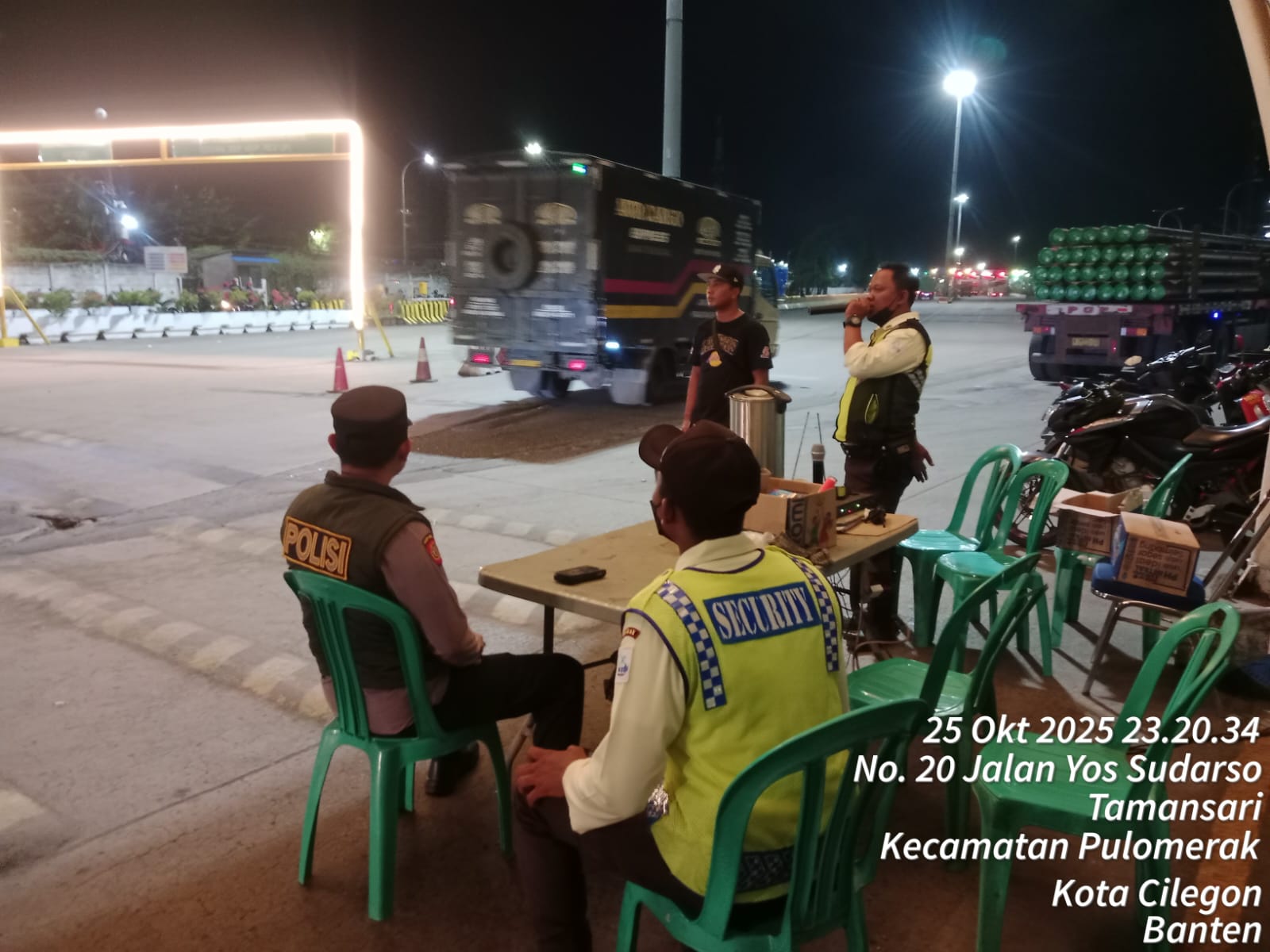 Cilegon - Personel Polsek Kskp Merak Polres Cilegon Polda Banten melaksanakan sambang dan patroli kawasan pelabuhan merak dalam rangka menjaga Harkamtibmas di Kawasan Pelabuhan Merak, Minggu (26/10/2025).