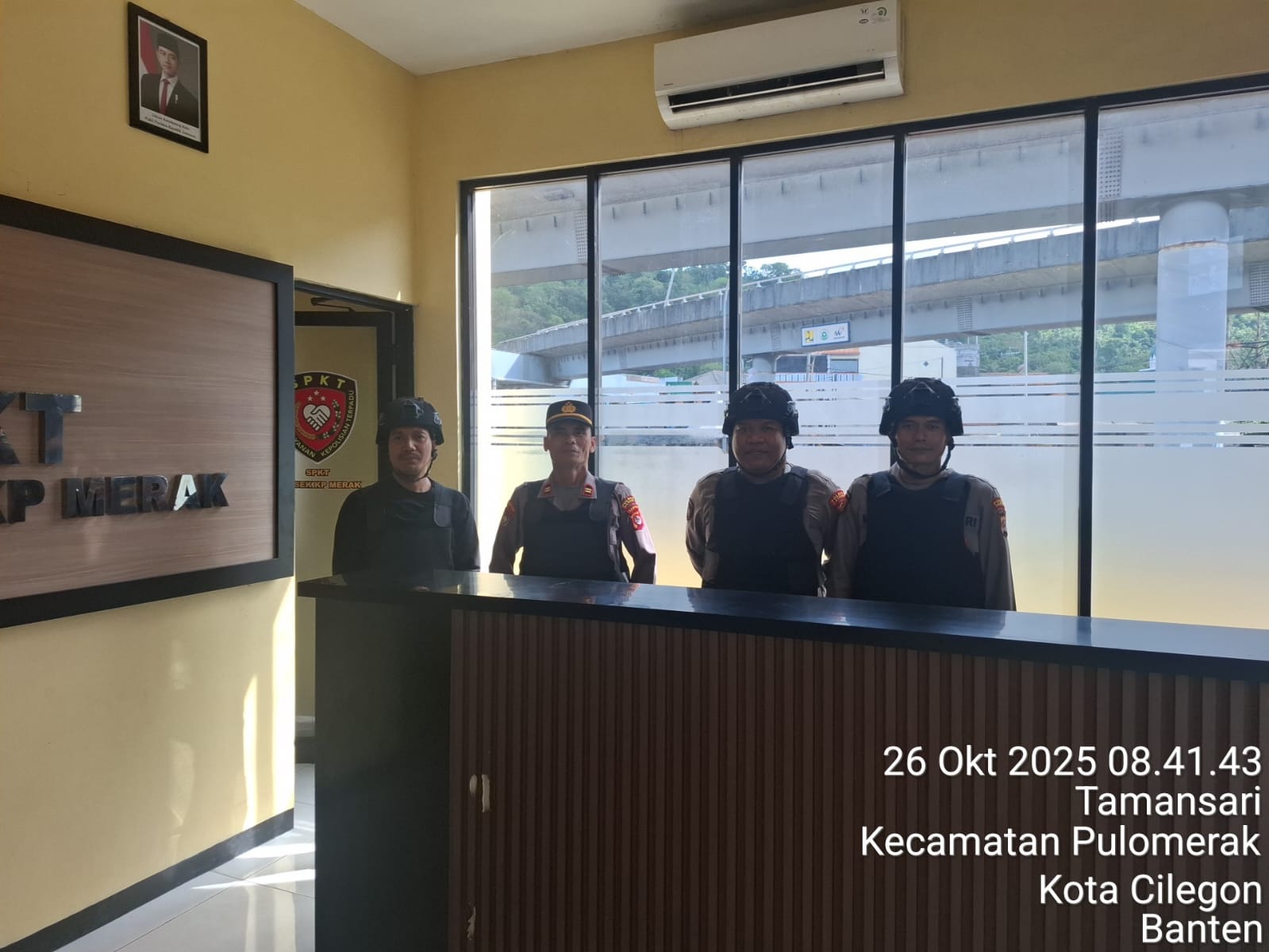 Cilegon - Personel piket jaga Polsek Kskp Merak Polres Cilgon Polda Banten melaksanakan siaga 1 Polsek pelaksanaan Sispam Mako oleh piket siaga dipimpin oleh Kspk Polsek Kskpy Merak Polres Cilegon Polda Banten, Minggu (26/10/2025).