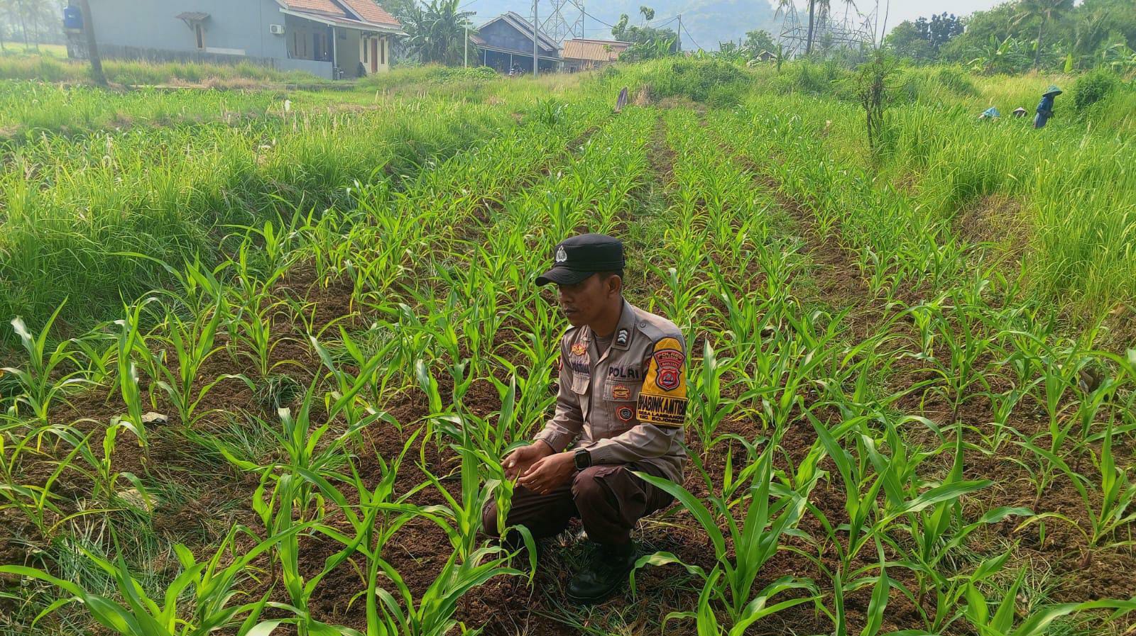Dalam Rangka Tingkatkan Swasembada Pangan, Brigadir Andri Bhabinkamtibmas Bersama Petani laksanakan Cek Pertumbuhan dan Perkembangan Jagung Pipil