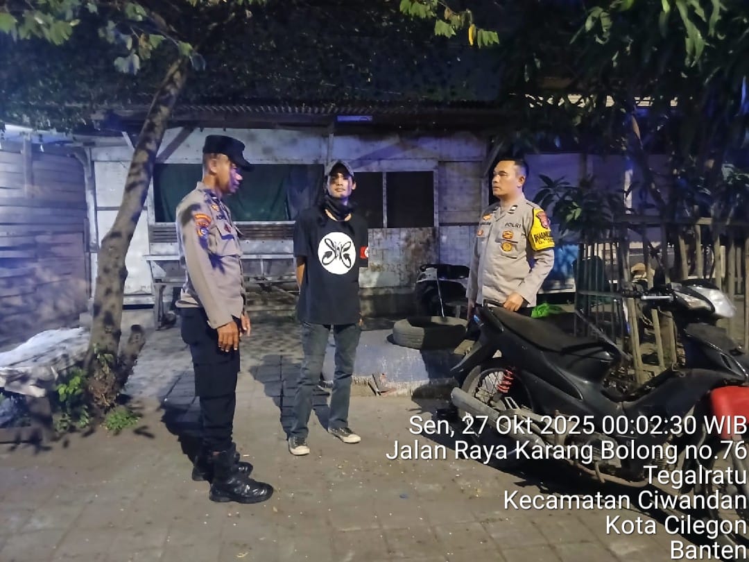 Cilegon - Personil Polsek Ciwandan Polres Cilegon Polda Banten Melaksanakan kegiatan Patroli Dialogis Di daerah hukum Polsek Ciwandan Guna Menciptakan Suasana Yang Aman Serta Memberikan Pesan-pesan Kamtibmas, Senin (27/10/2025).