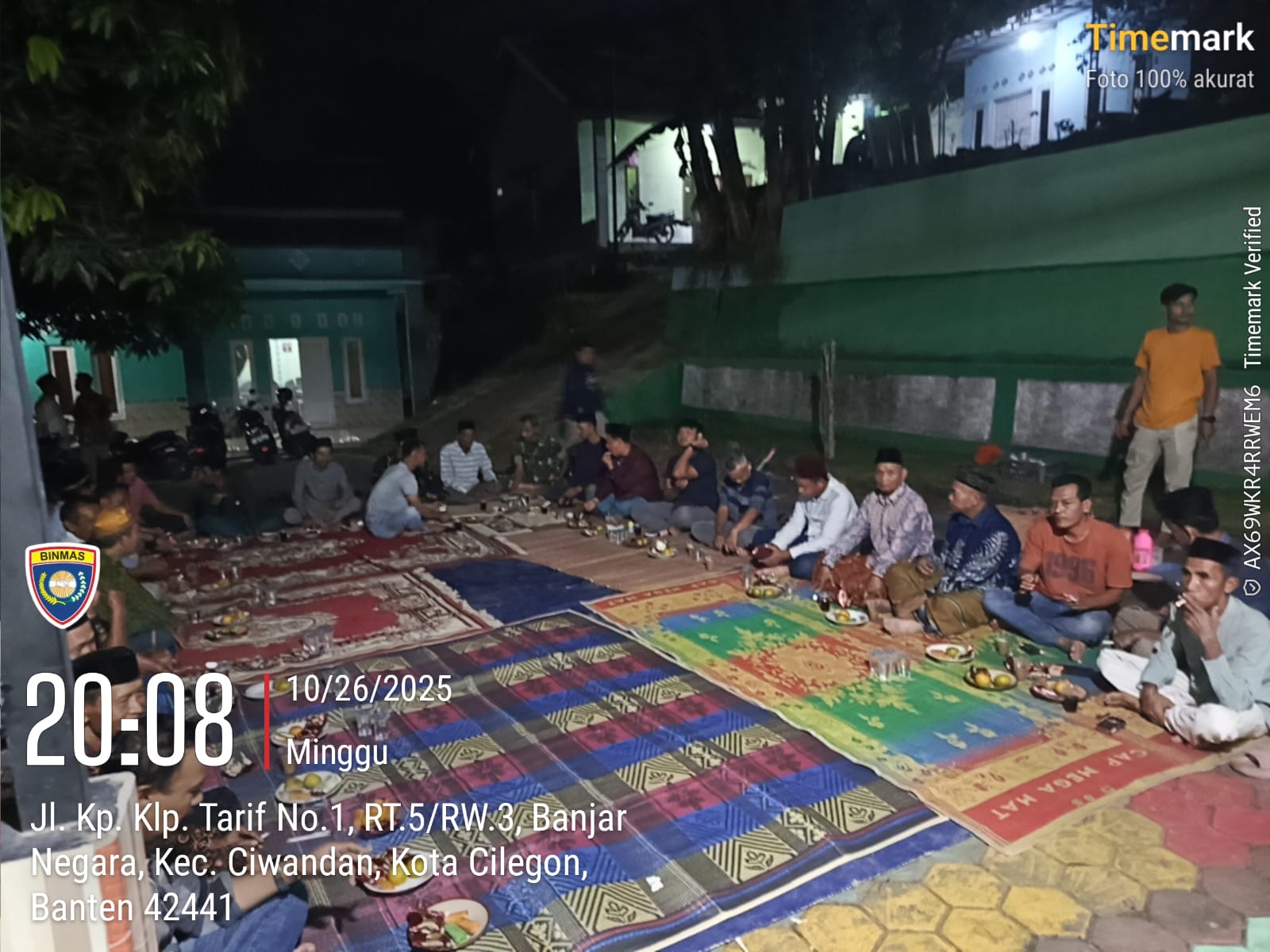 Cilegon - Bhabinkamtibmas Polsek Ciwandan Polres Cilegon Polda Banten menghadiri kegiatan Doa Bersama dan Dilanjutkan Pengajian Rutin dilingkungan Kelurahan Banjarnegara Kecamatan Ciwandan Kota Cilegon, Senin (27/10/2025).