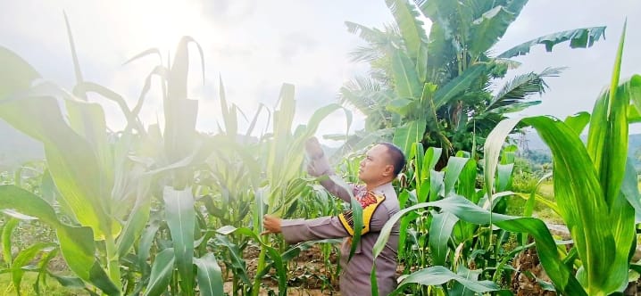 BHABINKAMTIBMAS POLSEK PURWAKARTA LAKUKAN MONITORING TANAMAN JAGUNG