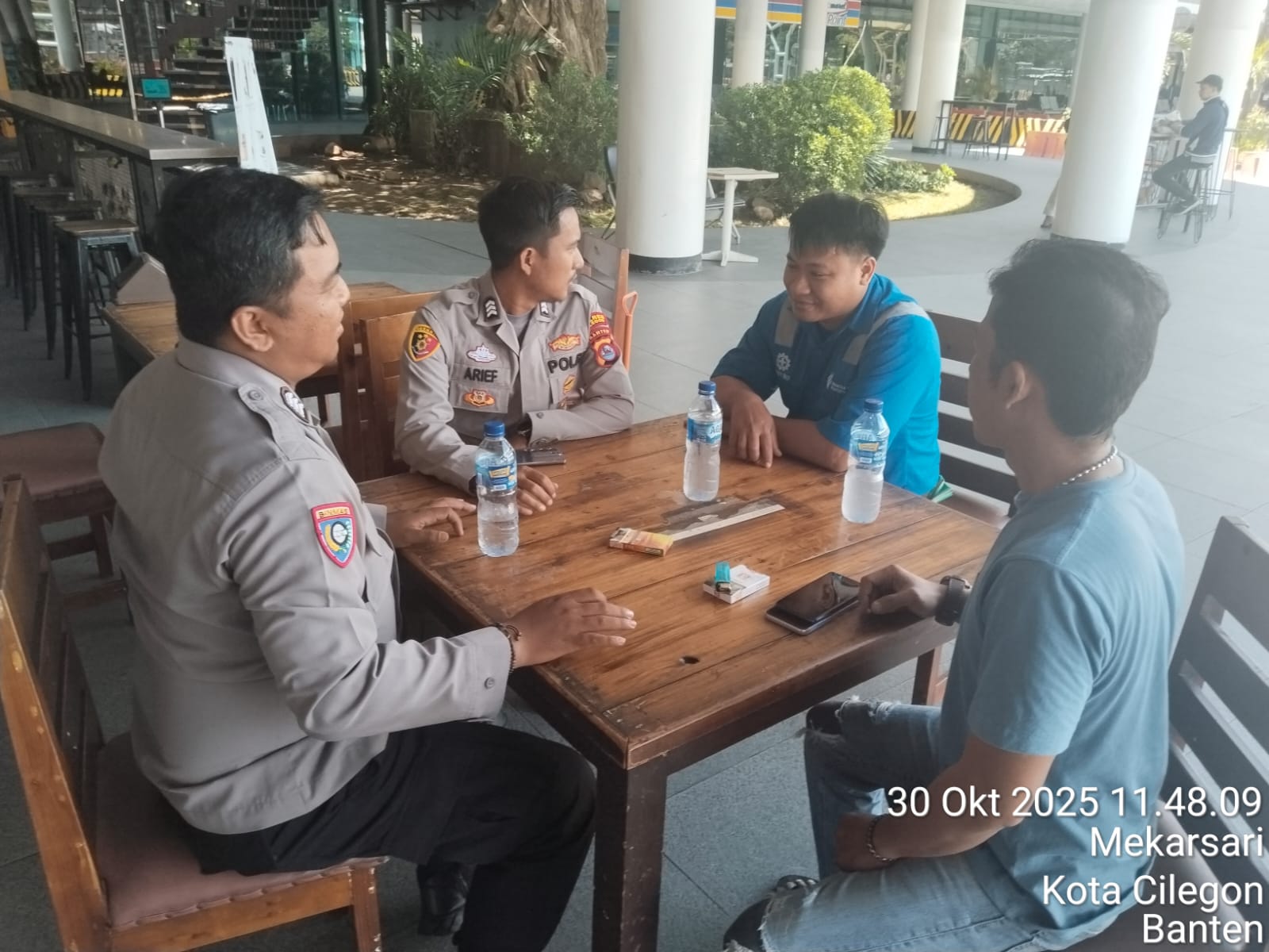 Cilegon - Personel Polsek Kskp Merak Polres Cilegon Polda Banten melaksanakan sambang dan patroli kawasan pelabuhan merak dalam rangka menjaga Harkamtibmas di Kawasan Pelabuhan Merak, Kamis (30/10/2025).