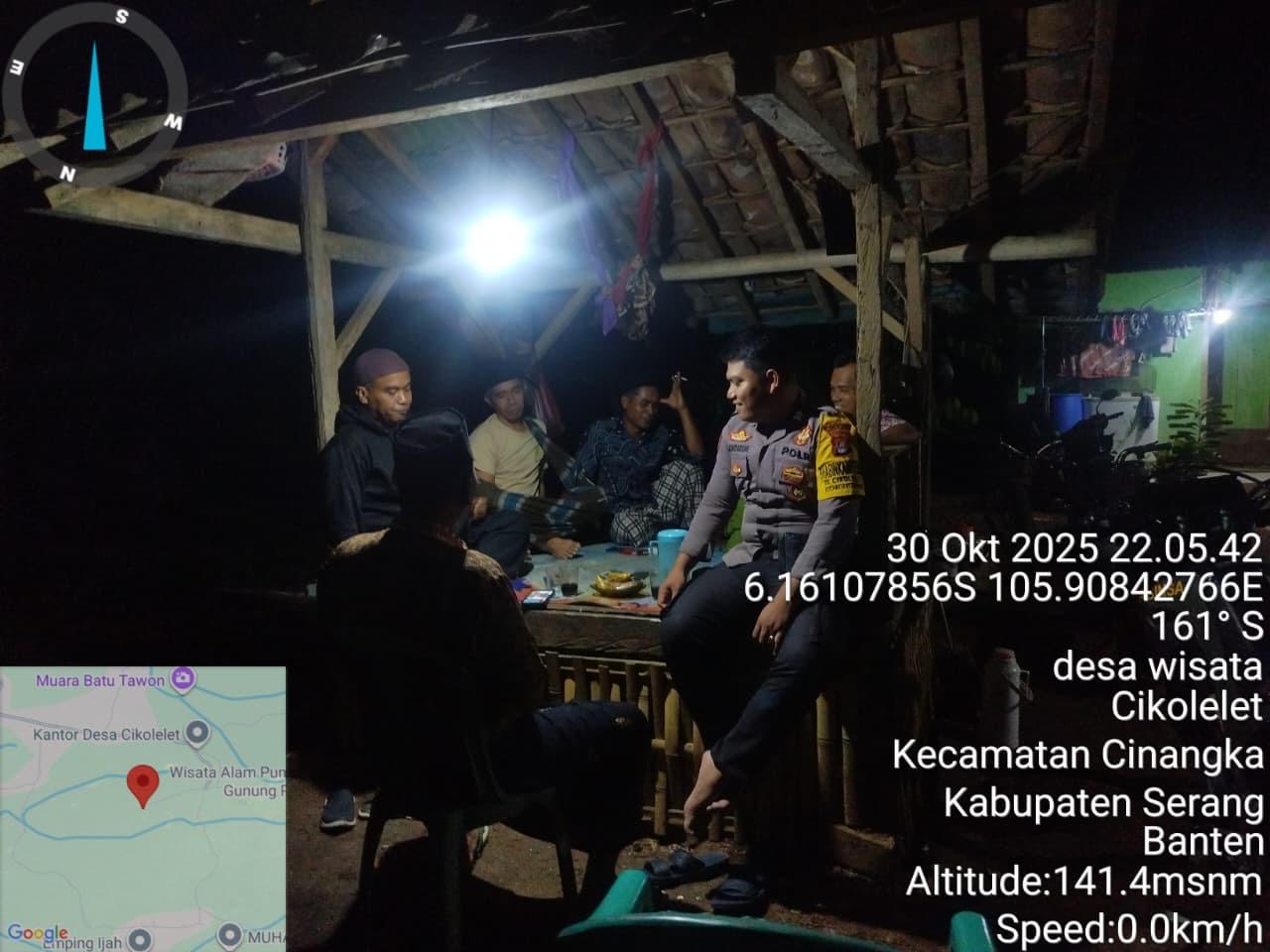 *Polres Cilegon* || Personil Bhabinkamtibmas Polsek Cinangka melaksanakan Program Komandan Wish Kapolda Banten RONDA SATKAMLING menyampaikan komunikasi dengan Petugas Siskamling agar berperan aktif dalam menciptakan Harkamtibmas yang aman dan Kondusif, Jumat (31/10/2025).