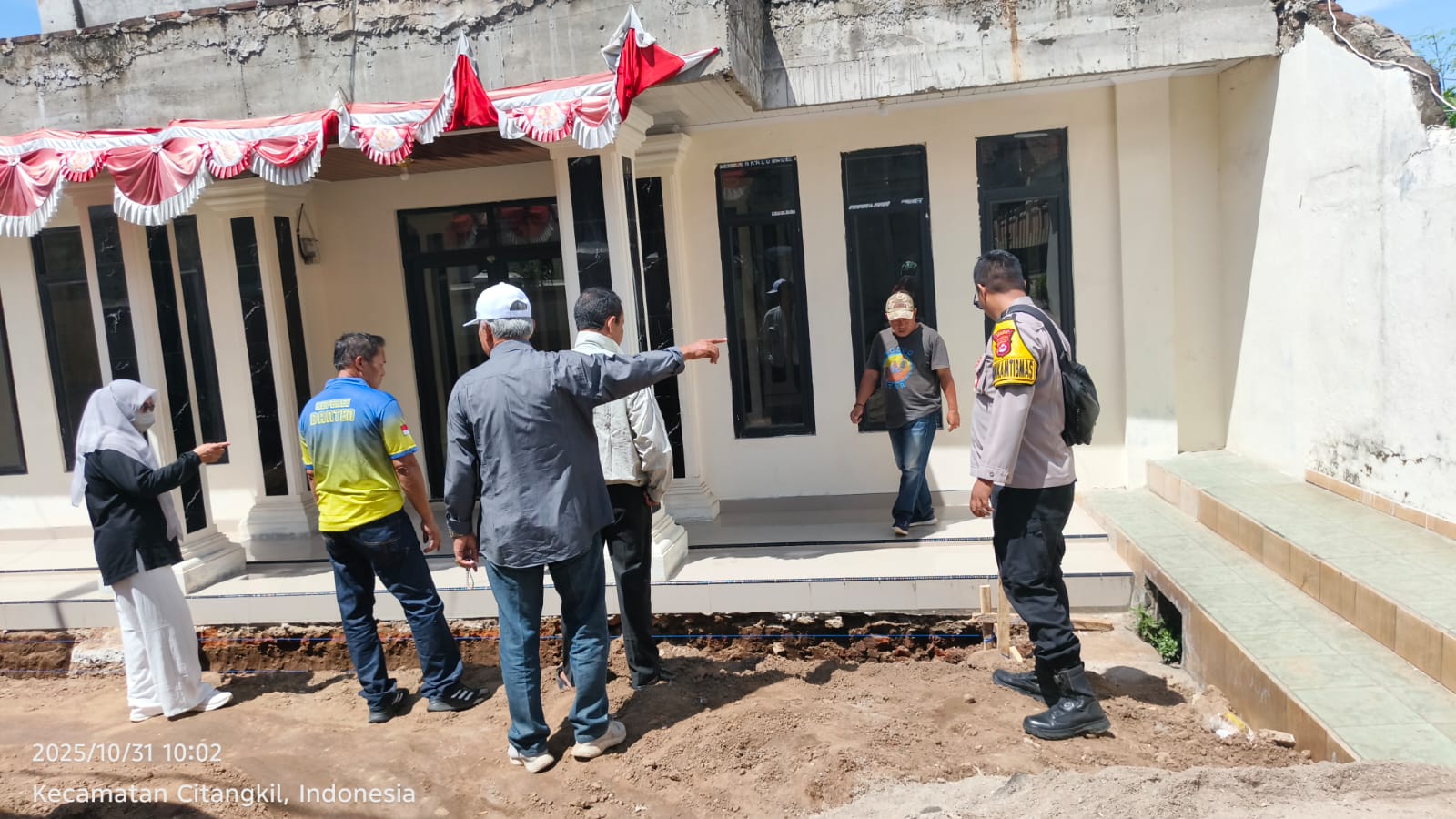 Cilegon - Bhabinkamtibmas Polsek Ciwandan Polres Cilegon Polda Banten Melaksanakan kegiatan Pra Kontruksi Pelaksanaan pembangunan Dikelurahan Samangraya Kecamatan Citangkil kota Cilegon, Jum’at (31/10/2025).