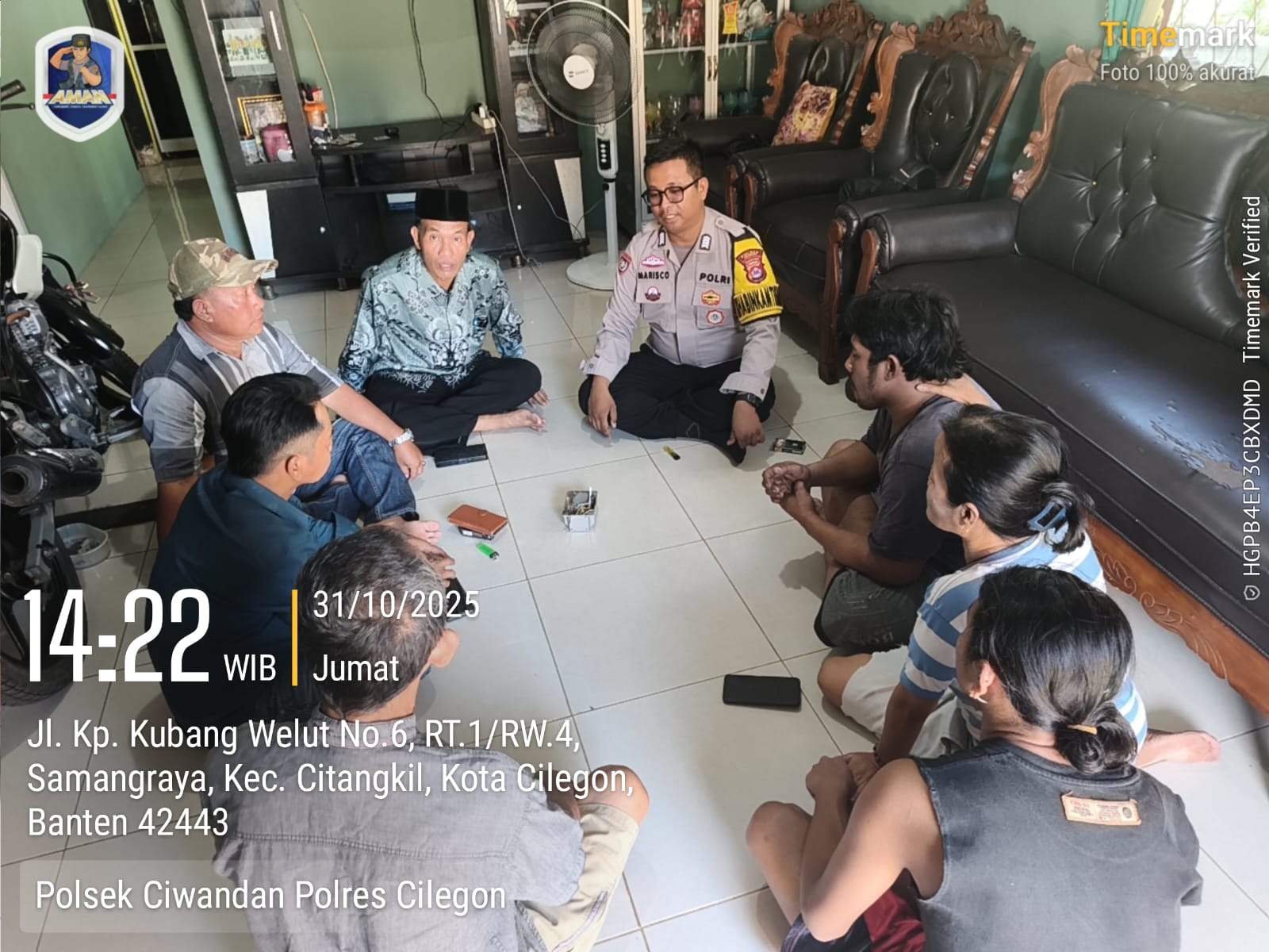 Cilegon - Sebagai pelayan masyarakat guna menciptakan kehidupan harmonis, damai dan saling pengertian dalam bermasyarakat Bhabinkamtibmas Kelurahan Samangraya Polsek Ciwandan Polres Cilegon Polda Banten BRIPKA Marisco melaksanakan Mediasi dan Penyelesaian Problem Solving Warga Binaan, Jum’at (31/10/2025).