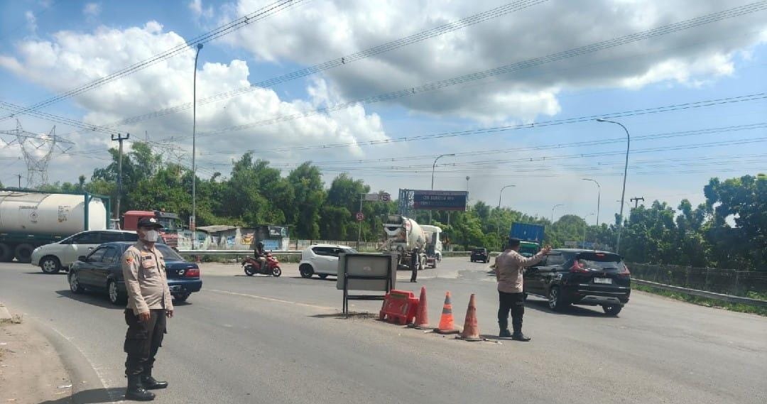 Cegah kemacetan, personil polsek cibeber lakukan pengaturan lalin