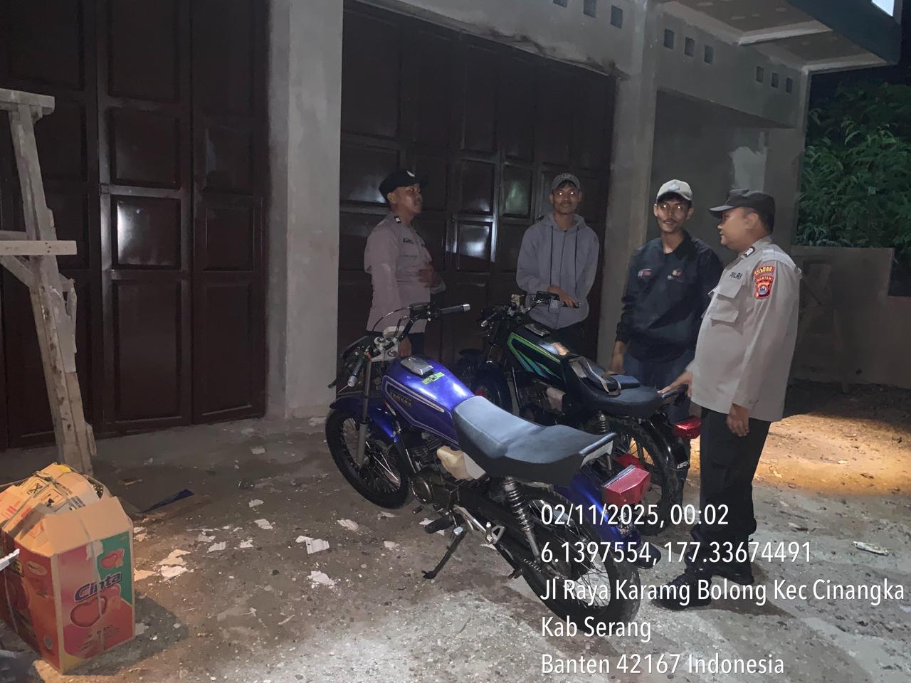 *Cilegon* – Dalam Rangka Pencegahan Kejahatan Jalanan dan Memelihara situasi keamanan dan menjaga serta memberikan rasa aman dan nyaman di masyarakat,Salah satu upaya untuk mewujudkan hal tersebut sebagaimana yang dilakukan oleh Personil Polsek Cinangka Polres Cilegon Polda Banten melaksanakan giat patroli blue light malam hari hingga menjelang pagi, Minggu (02/11/2025).