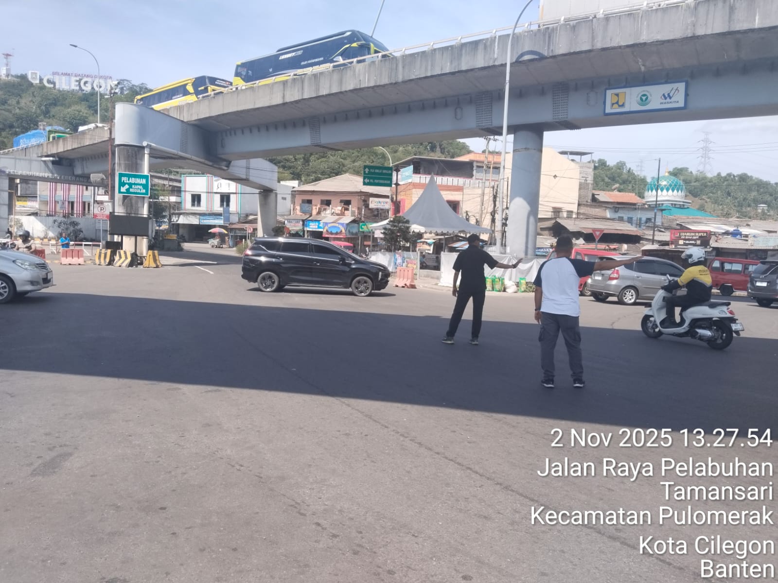 Personel KSKP Merak Polres Cilegon Laksanakan Pengaturan Kendaraan di Kawasan Pelabuhan Merak
