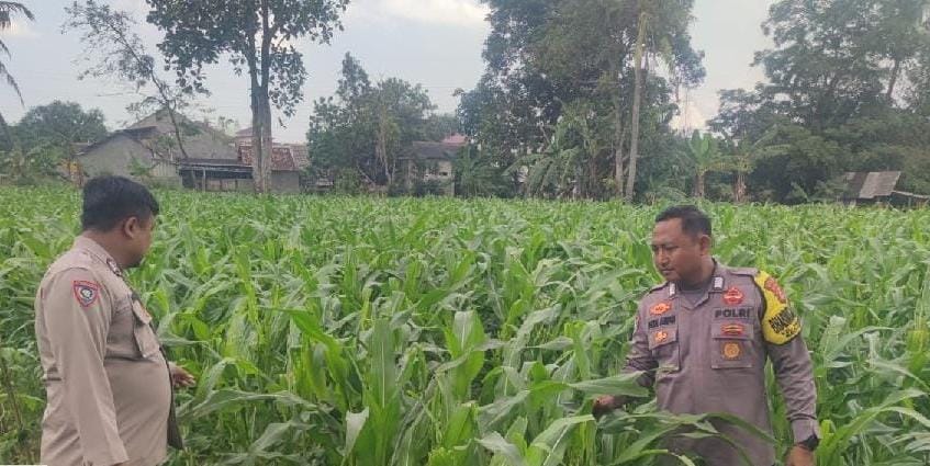 Pada kesempatan tersebut personil bhabinkamtibmas polsek Cibeber Polres Cilegon Polda Banten meninjau langsung lahan pertanian Jagung milik warga Binaan Lingkungan kelurahan Karang Asem Kec. Cibeber.