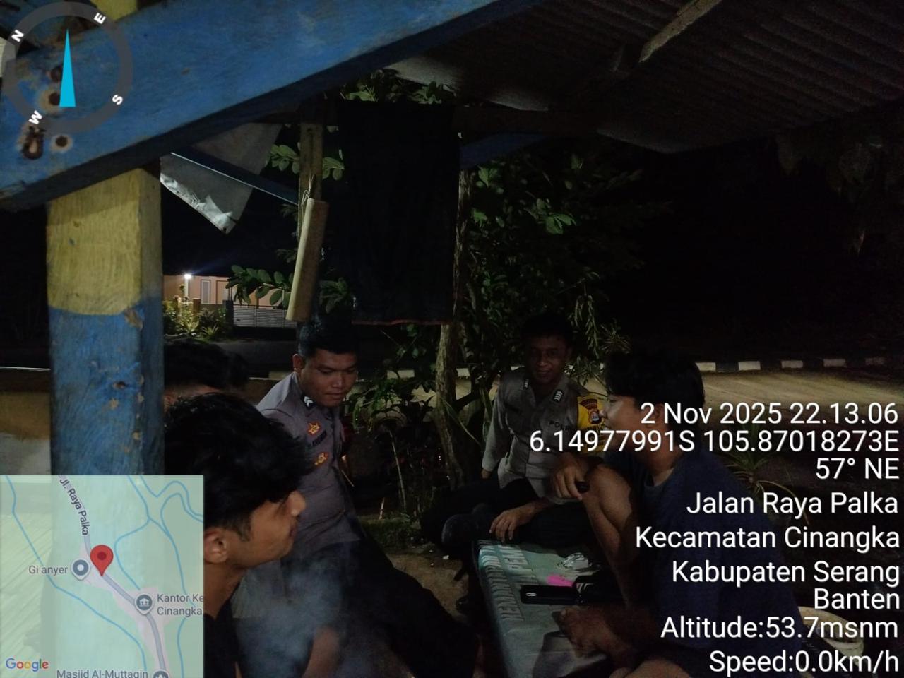 *Polres Cilegon* || Personel Bhabinkamtibmas Polsek Cinangka melaksanakan Program Komandan Wish Kapolda Banten RONDA SATKAMLING menyampaikan komunikasi dengan Petugas Siskamling agar berperan aktif dalam menciptakan Harkamtibmas yang aman dan Kondusif, Senin (03/11/2025).