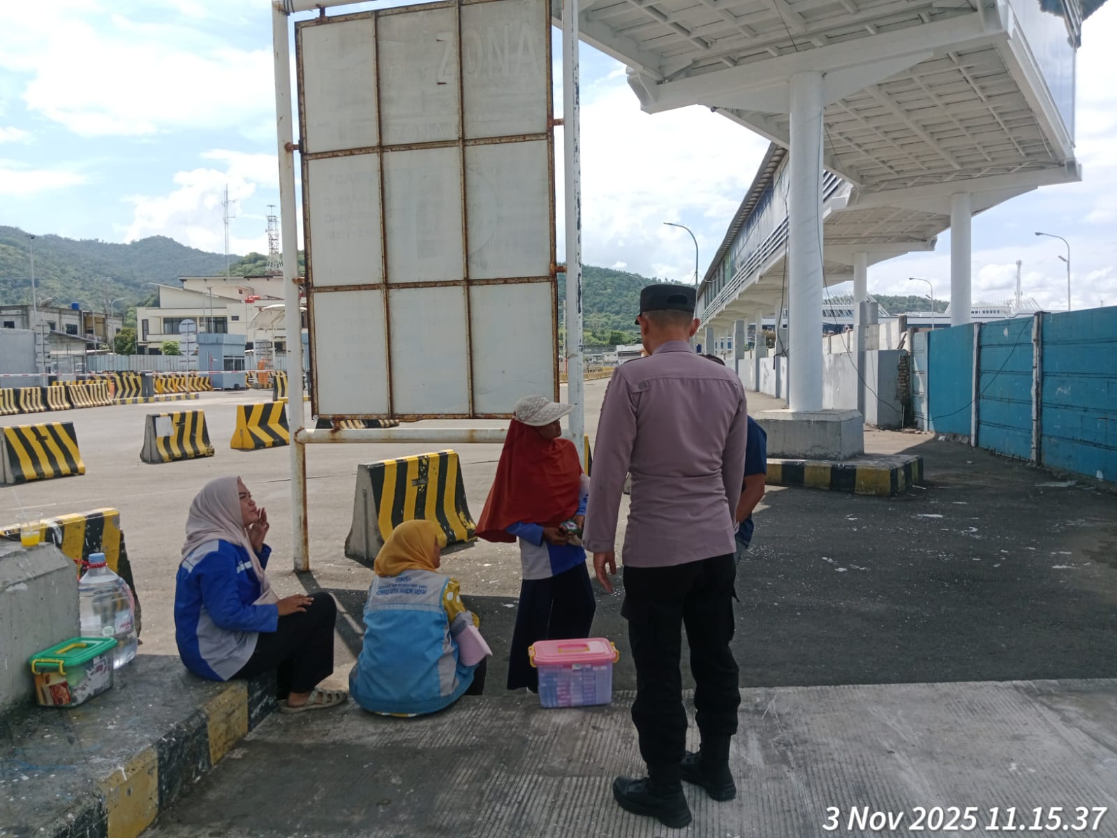 Cilegon - Personel Polsek Kskp Merak Polres Cilegon Polda Banten melaksanakan sambang dan patroli kawasan pelabuhan merak dalam rangka menjaga Harkamtibmas di Kawasan Pelabuhan Merak, Senin (03/11/2025).