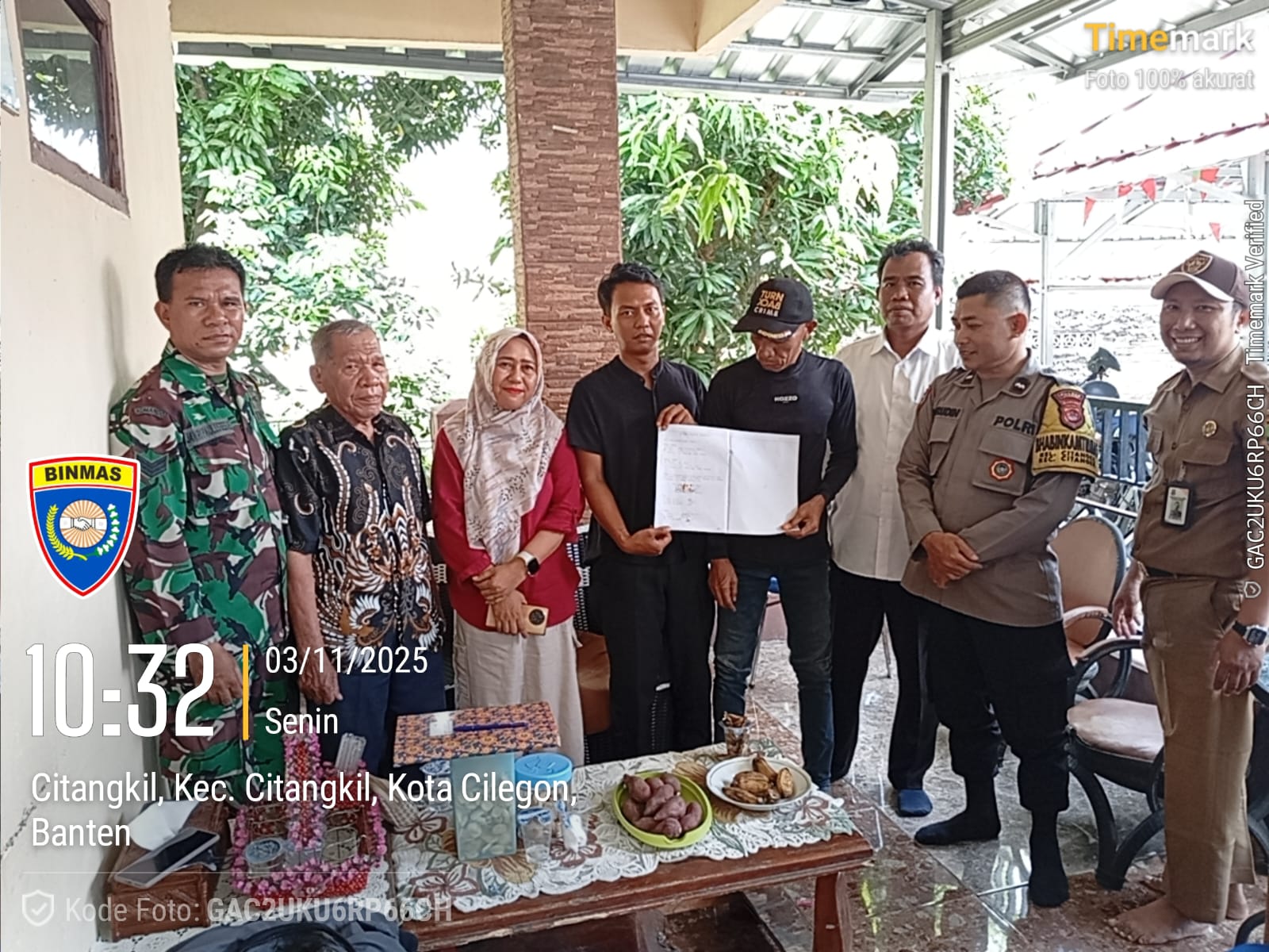 Cilegon – Personil Bhabinkamtibmas Polsek Ciwandan Polres Cilegon Polda Banten Bersama dengan Babinsa Koramil Ciwandan Melaksanakan Sambang Bersama dalam rangka Memberikan Rasa Aman dan Himbauan Kamtibmas Kepada Warga Masyarakat, Senin (03/11/2025).