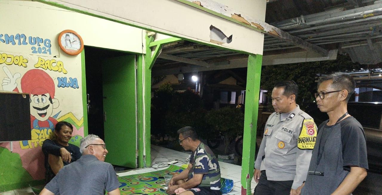 Personel Bhabinkamtibmas Polsek Anyar Polres Cilegon Polda Banten Aiptu Irvan melaksanakan sambang Ronda Siskamling Dalam rangka menjaga Harkamtibmas dan Sebagai bentuk mendukung Program Quick Wins Presisi Polri, Selasa (04/10).