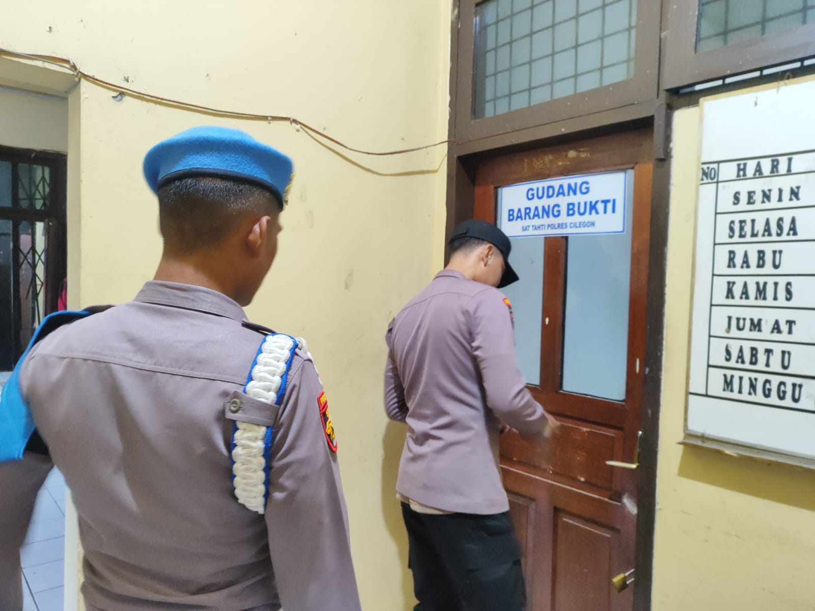 Anggota Piket Tahti Polres Cilegon Harus Melakukan Kegiatan Rutin Pengecekan Kelengkapan dan Barang Bukti Di Gudang Barang Bukti.