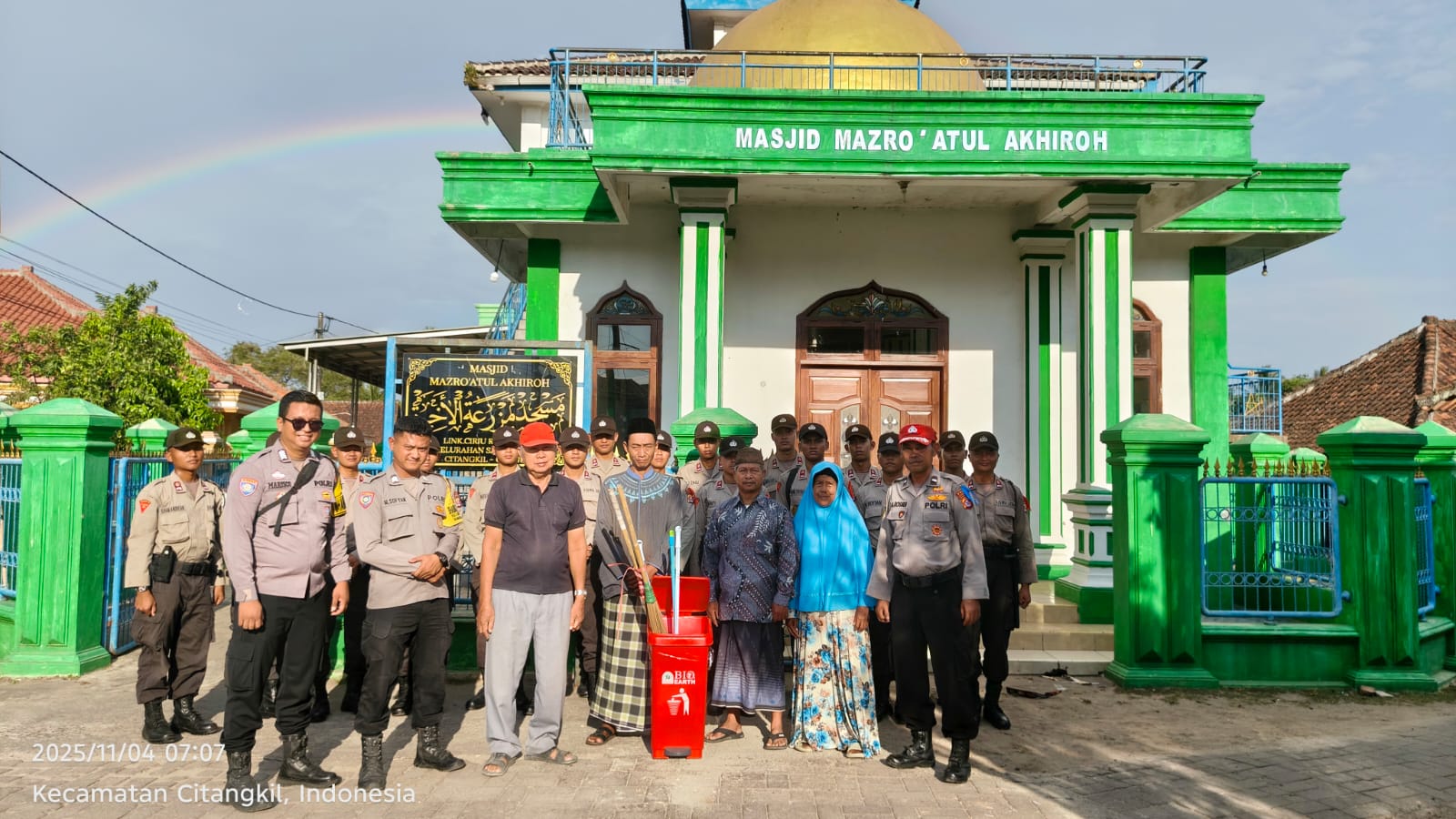 Cilegon - Bhabinkamtibmas Polsek Ciwandan Polres Cilegon Polda Banten melaksanakan kegiatan Bakti Religi dengan membersihkan Masjid Mazro Atul Akhiroh Rt 03/03 Kelurahan Samangraya Kecamatan Citangkil Kota Cilegon, Selasa (04/11/2025).