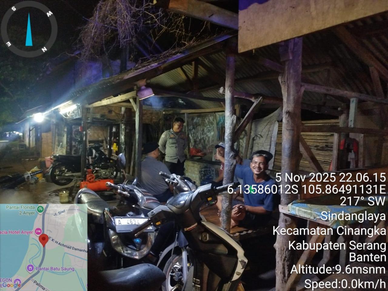 *Cilegon* – Dalam Rangka Pencegahan Kejahatan Jalanan dan Memelihara situasi keamanan dan menjaga serta memberikan rasa aman dan nyaman di masyarakat,Salah satu upaya untuk mewujudkan hal tersebut sebagaimana yang dilakukan oleh Personil Polsek Cinangka Polres Cilegon Polda Banten melaksanakan giat patroli blue light malam hari hingga menjelang pagi, Kamis (06/11/2025).