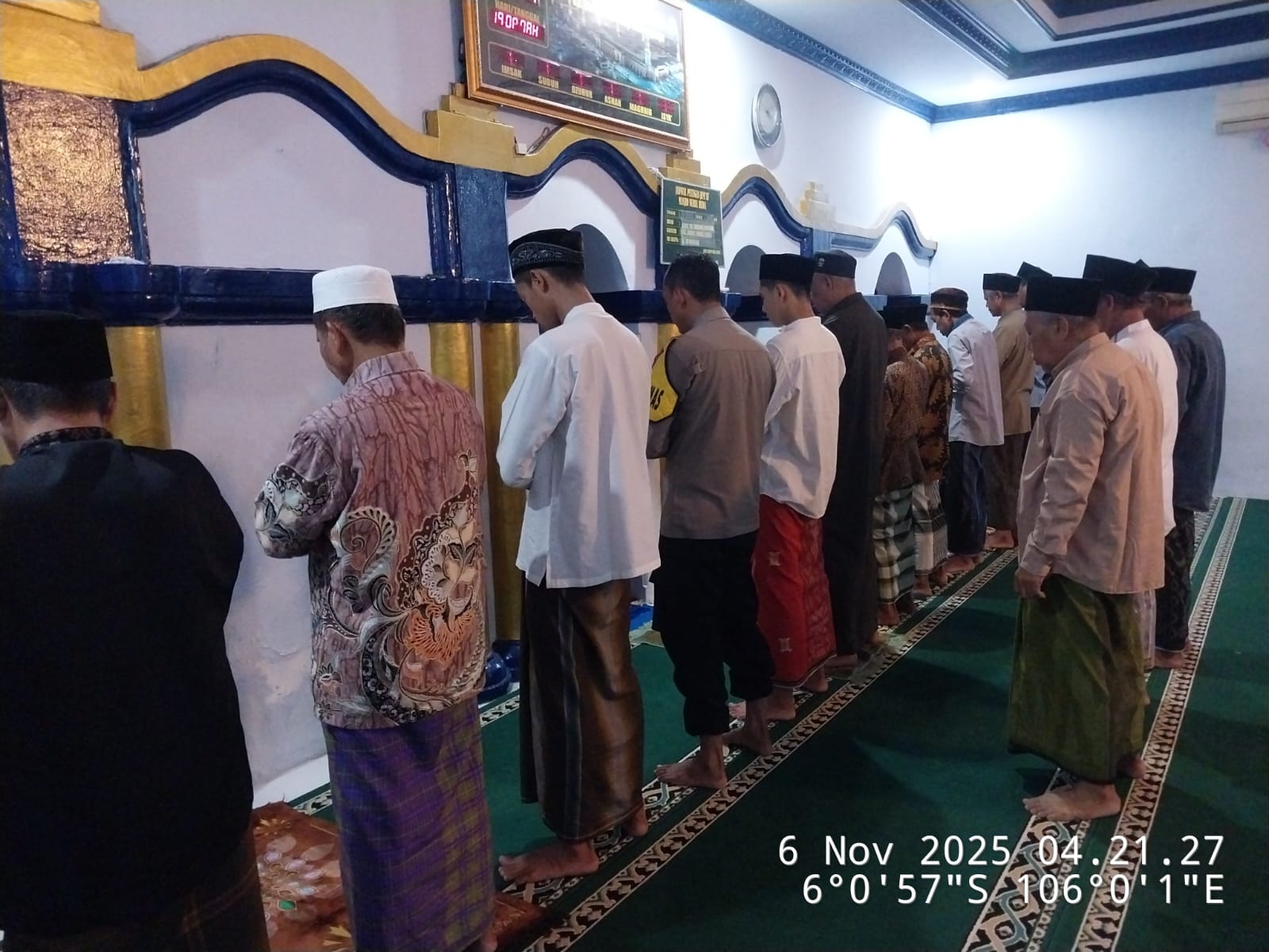Cilegon – Bhabinkamtibmas Polsek Ciwandan Polres Cilegon Polda Banten menggelar kegiatan Pembinaan Rohani dengan Sholat subuh keliling di Masjid Yang ada Di Daerah hukum Polsek Ciwandan Polres Cilegon Polda Banten, Kamis (06/11/2025).