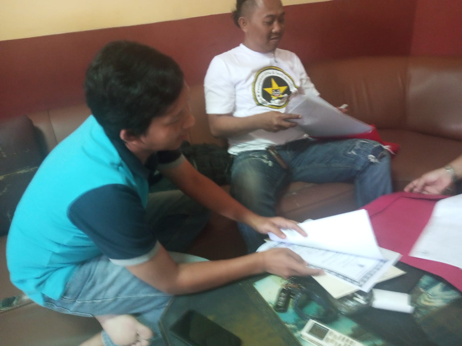 Personil sat intelkam melakukan koordinasi dengan tokoh pemuda kec. Cinangka kabupaten serang.