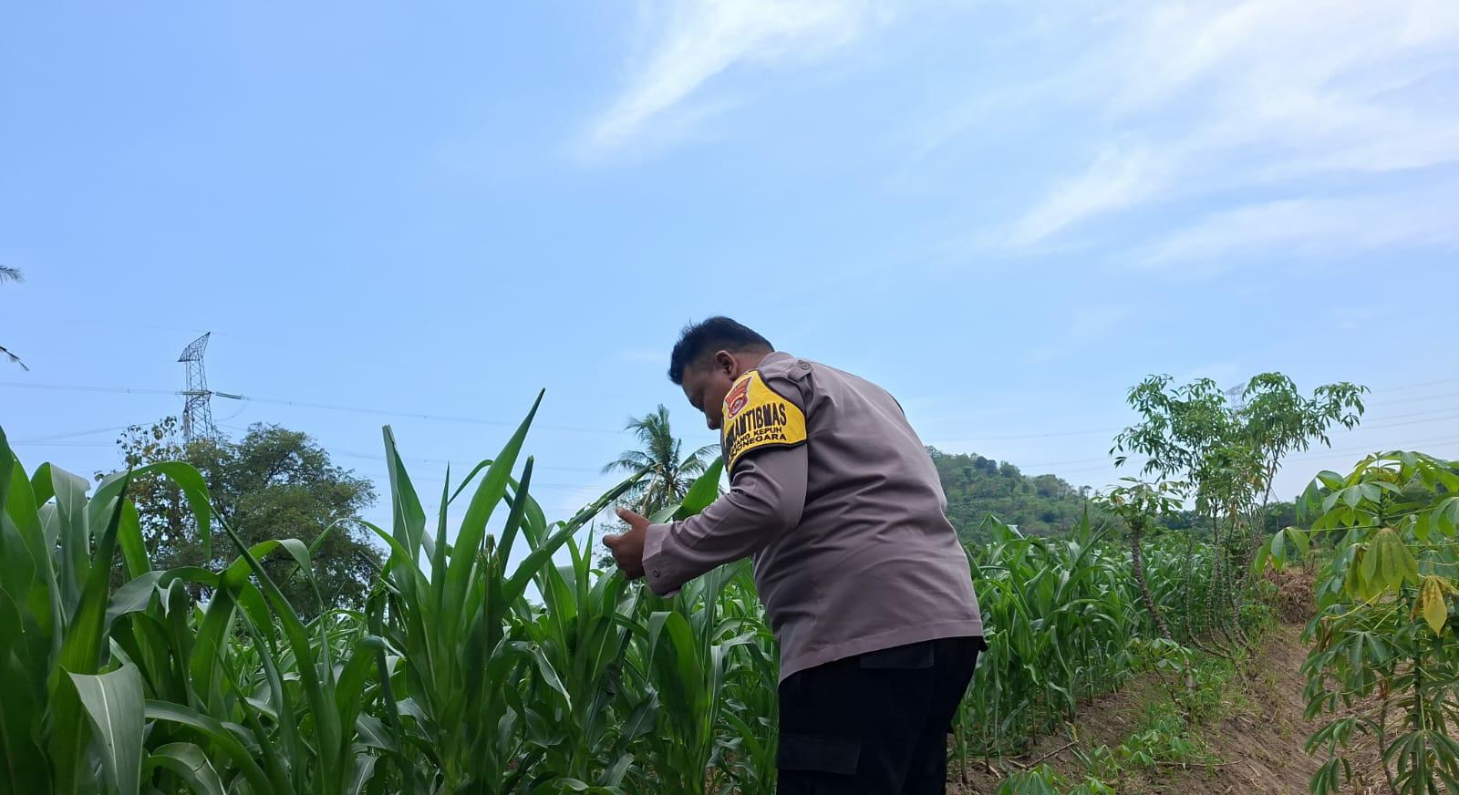Anggota Bhabinkamtibmas Melakukan Pengecekan dan Monitoring Tanaman Jagung