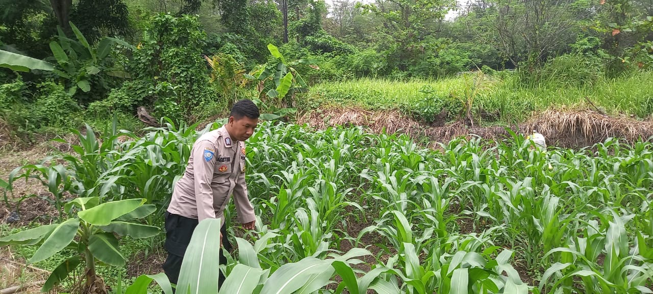 Bripka Agustoni, Babinkamtibmas Kelurahan Kotabumi, Kecamatan Purwakarta, Kota Cilegon, melaksanakan monitoring dan pengecekan tanaman jagung di Jalan Kubang Lampung, Komplek Perumahan KS Kel.Kotabumi kec.Purwakarta Kota Cilegon