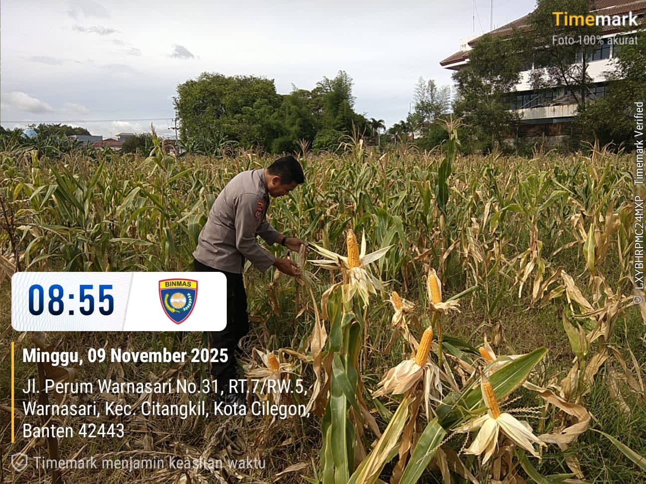 Cilegon - Dalam rangka memberikan dukungan kepada Pemerintah terkait Ketahanan pangan, Bhabinkamtibmas Ciwandan Polres Cilegon Polda Banten melaksanakan Implementasikan Program Asta Cita Presiden dengan fokus pada sektor Pertanian tanaman Jagung dilingkungan Binaan, Minggu (09/11/2025).