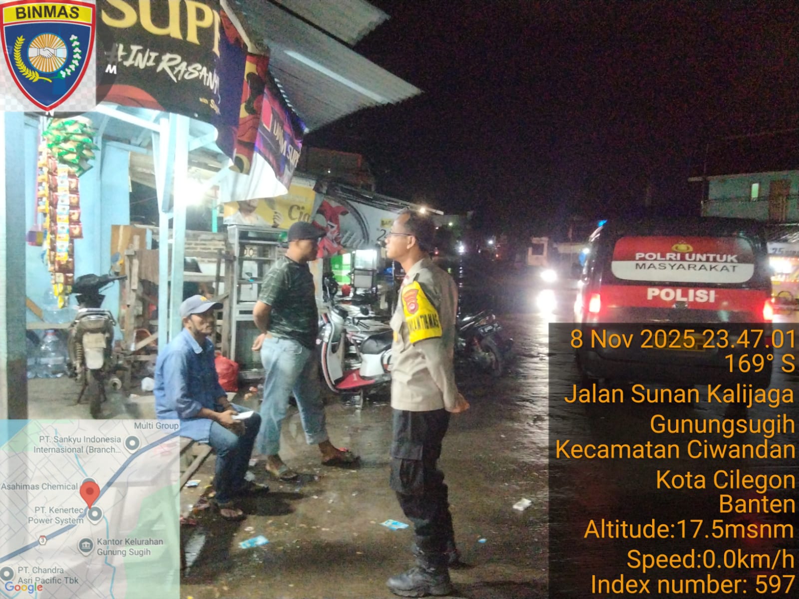 Cilegon - Dalam rangka menekan tindak kriminalitas serta untuk memberikan rasa aman dan nyaman kepada masyarakat terutama pada malam hari,Personil Polsek Ciwandan Polres Cilegon Polda Banten melakukan patroli malam hari di daerah-daerah yang rawan kriminalitas, Minggu (09/11/2025).