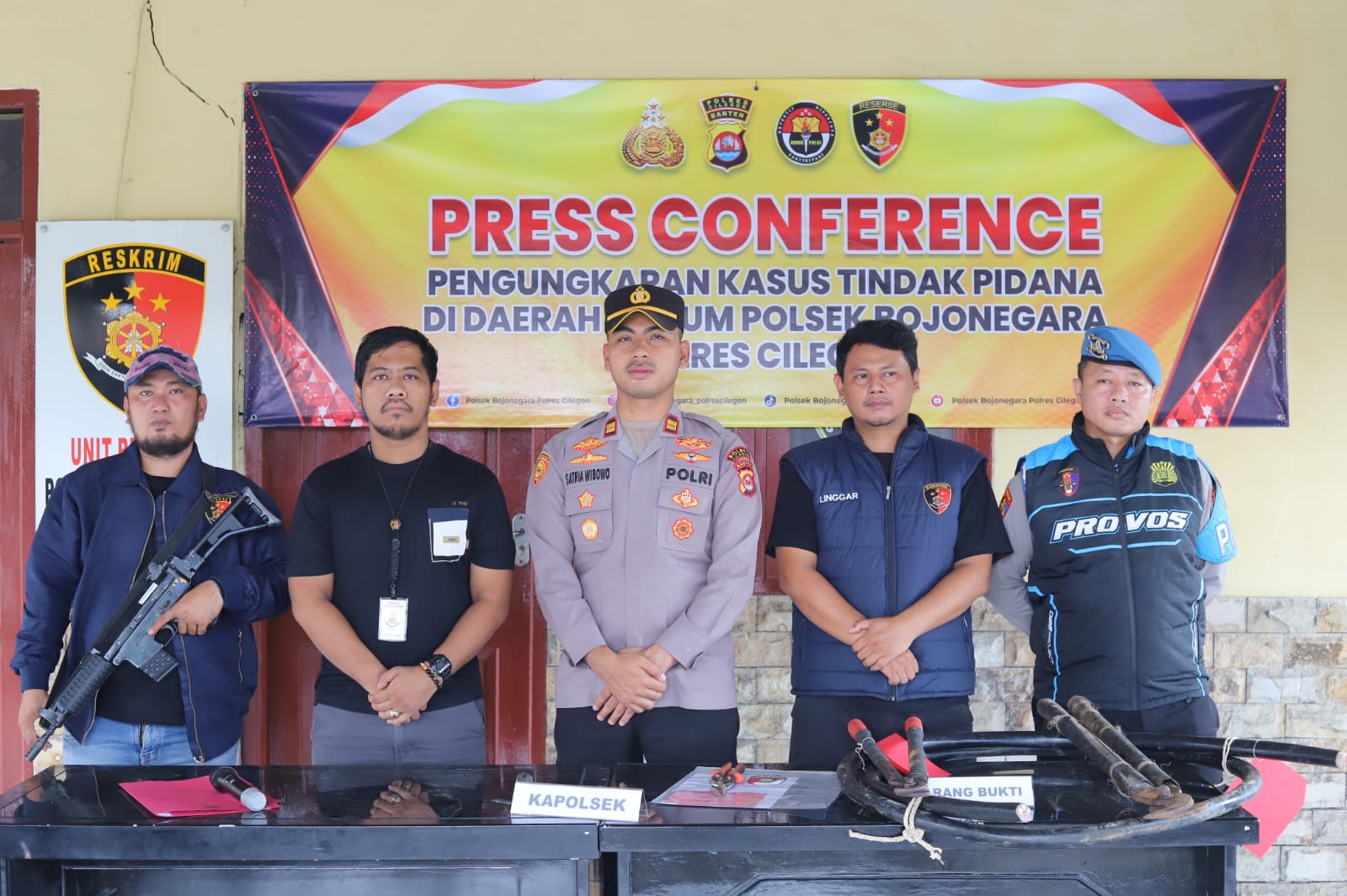 Keberhasilan pengungkapan kasus tersebut disampaikan langsung oleh Kapolsek Bojonegara, IPTU Muhammad Lazim Satria Wibowo, S.Tr.K., dalam kegiatan press conference yang digelar di Aula Polsek Bojonegara, Senin (10/11/2025).
