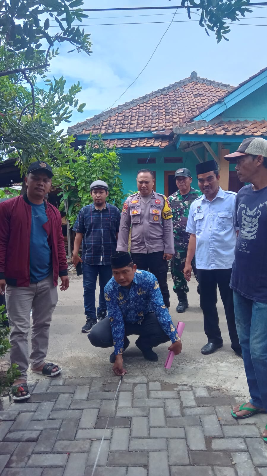 Babinkamtibmas Kelurahan Pabean, Aipda Anton Sudrajat, melaksanakan pendampingan dan monitoring kegiatan opname hasil pekerjaan kelompok masyarakat (Pokmas) di Kelurahan Pabean