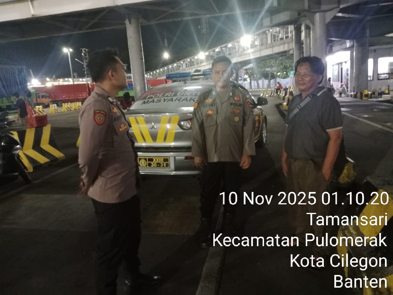 Cilegon - Personil Polsek Kskp Merak Polres Cilegon melaksanakan patroli di kawasan pelabuhan merak memberikan rasa aman dan damai, Senin (10/11/2025)