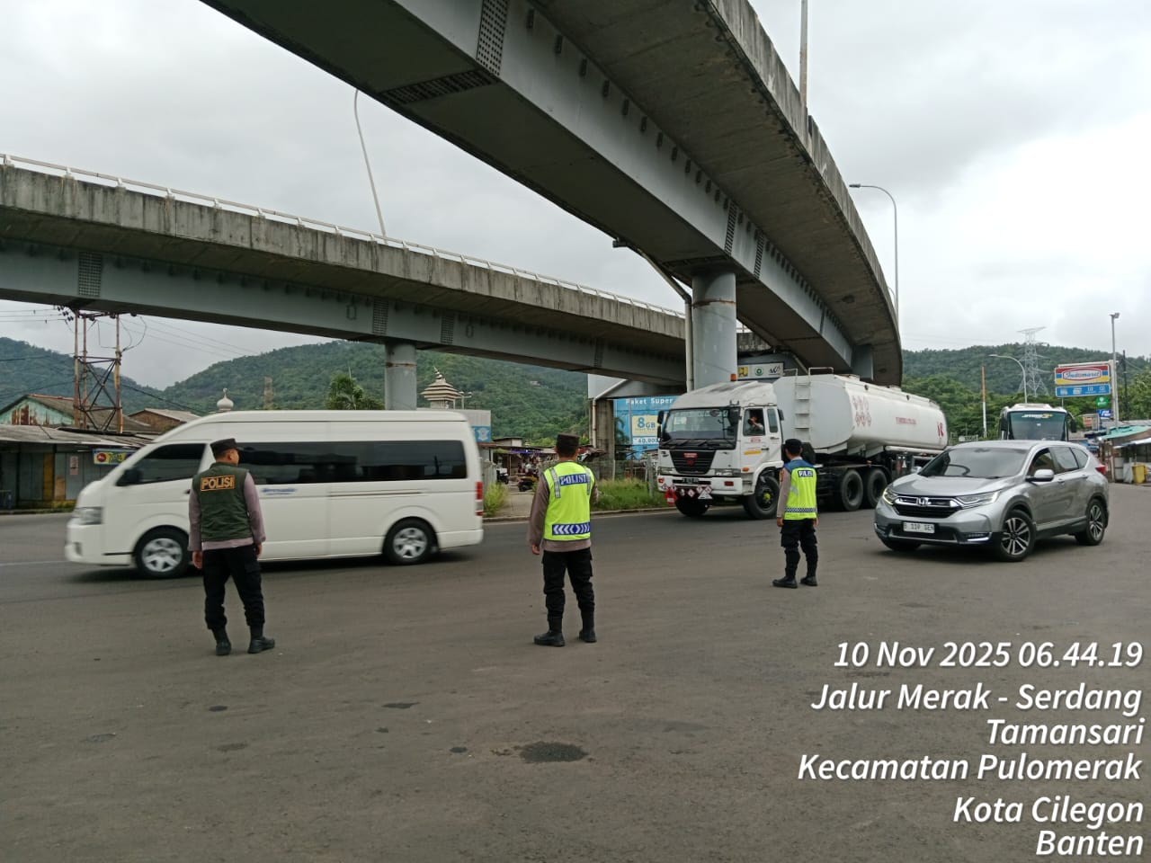 Polsek KSKP Merak Pastikan Kelancaran Arus Kendaraan di Pelabuhan Merak