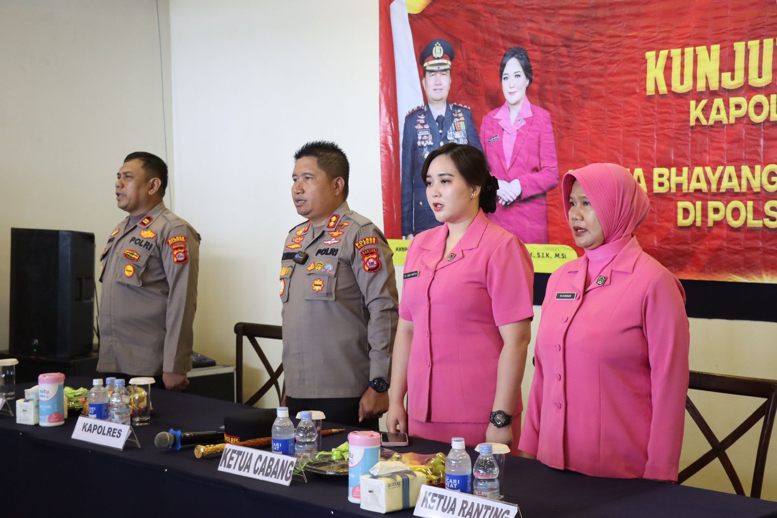 Kegiatan dimulai sekitar pukul 10.40 WIB dengan penyambutan rombongan, dilanjutkan pembukaan, menyanyikan lagu Indonesia Raya, dan pembacaan doa. Dalam kesempatan tersebut, Kapolsek Cinangka IPTU Rusnata menyampaikan ucapan selamat datang kepada Kapolres dan Ketua Bhayangkari Cabang Cilegon beserta jajaran, serta menyampaikan rasa hormat dan terima kasih atas perhatian pimpinan terhadap personel di tingkat Polsek.