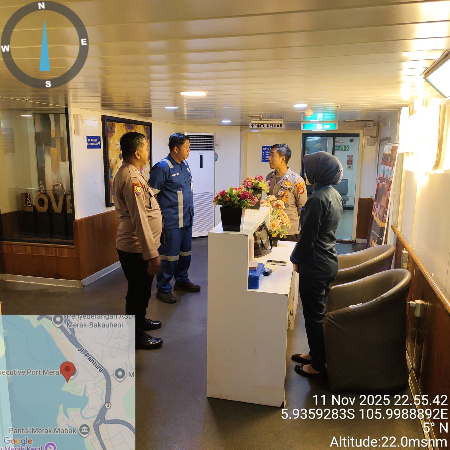 Cilegon - Personil Polsek Kskp Merak Polres Cilegon melaksanakan patroli di kawasan pelabuhan merak memberikan rasa aman dan damai, Rabu (12/11/2025)