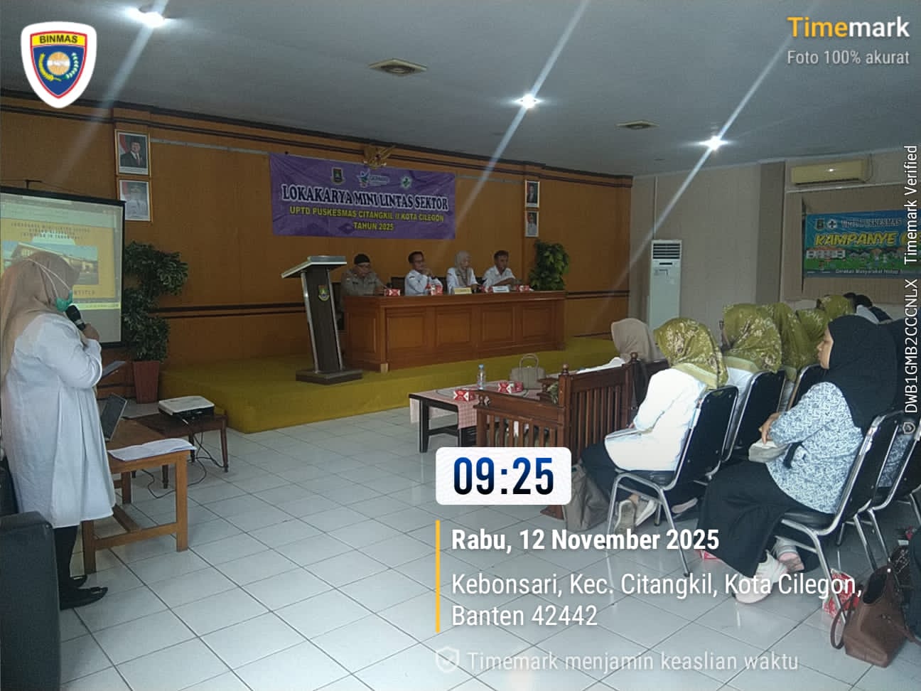 Cilegon - Wakapolsek Ciwandan Polres Cilegon Polda Banten AKP UUP M. Ma'ruf menghadiri kegiatan Lokakarya Mini Lintas Sektor Kesehatan UPTD Puskesmas Citangkil I Tahun 2025 Di Aula Kantor Kecamatan Citangkil, Kamis (12/11/2025).