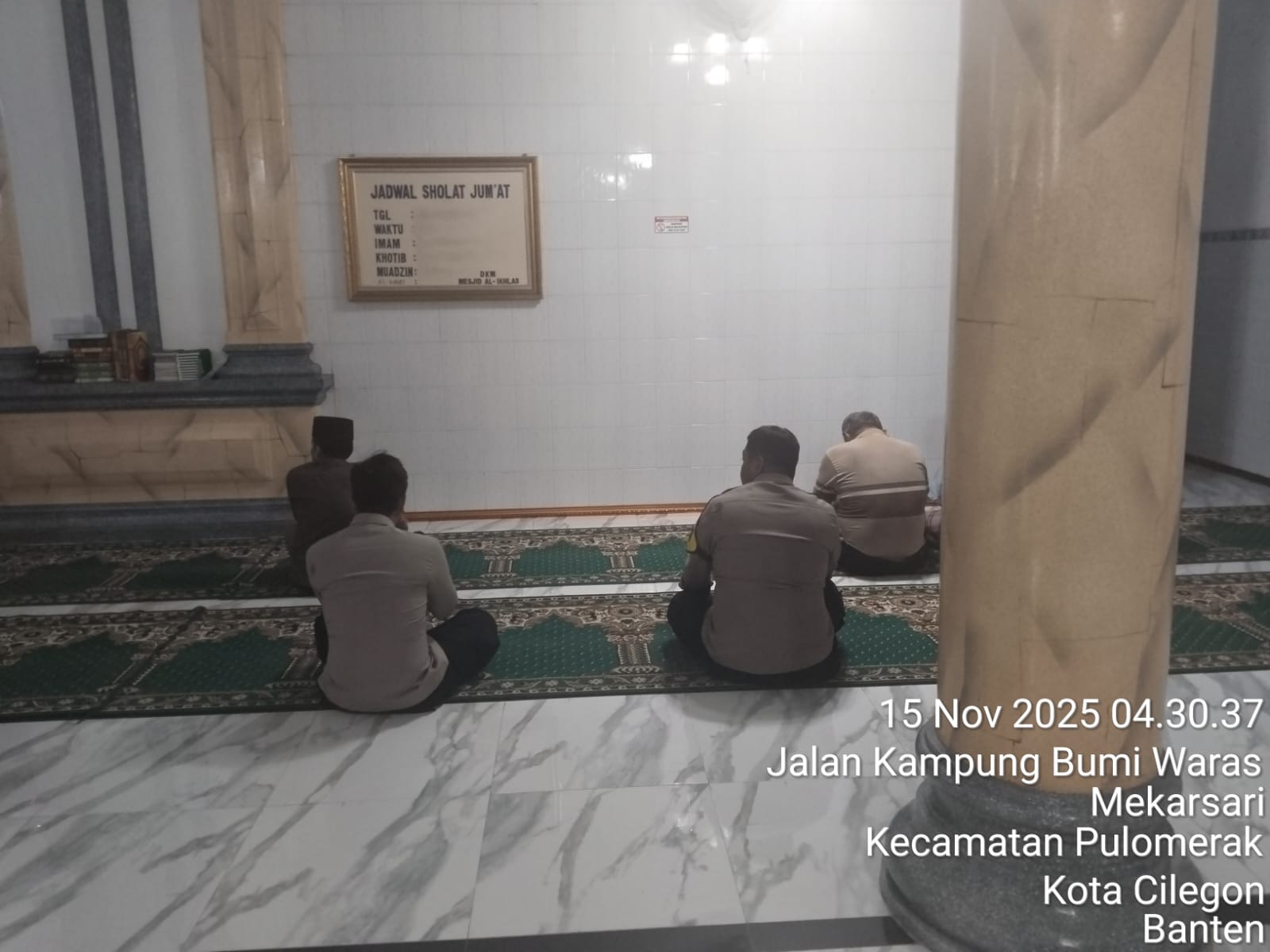 “Dalam kegiatan tersebut, Personil Polsek Kp Polres Cilegon Polda Banten turut berbaur dengan jemaah masjid dalam melaksanakan shalat subuh berjamaah. Setelah itu, dilakukan dialog interaktif antara petugas kepolisian dan masyarakat untuk mendengarkan aspirasi serta memperoleh masukan terkait dengan situasi keamanan dan ketertiban di lingkungan sekitar,” tambah Kapolsek.