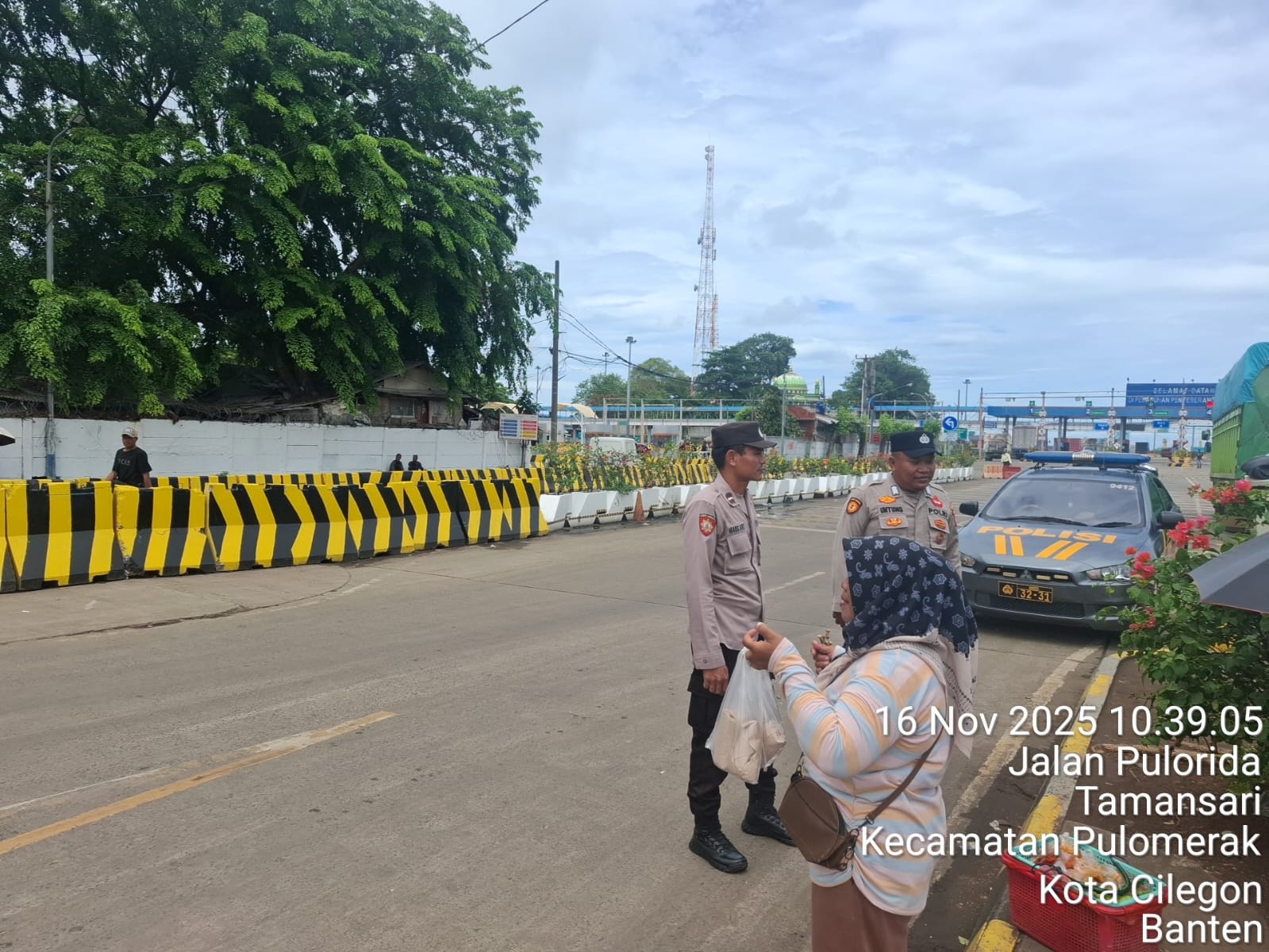 Cilegon - Personel Polsek Kskp Merak Polres Cilegon Polda Banten melaksanakan sambang dan patroli kawasan pelabuhan merak dalam rangka menjaga Harkamtibmas di Kawasan Pelabuhan Merak, Minggu (16/11/2025).