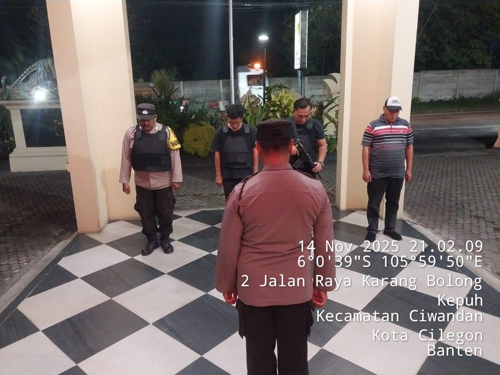 Cilegon - Personil Polsek Ciwandan Polres Cilegon Polda Banten menggelar apel malam Persiapan Patroli yang dipimpin Oleh Pawas Kanit Samapta Polsek Ciwandan AKP Sarpan, Minggu (16/11/2025).