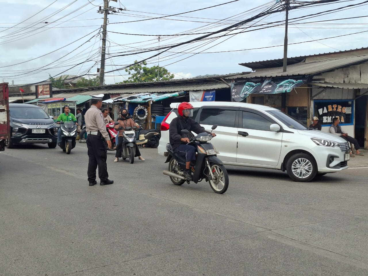 Polsek Anyar Dalam Laksanakan Pengaturan Lalu Lintas Agar Jalur Aman Lancar