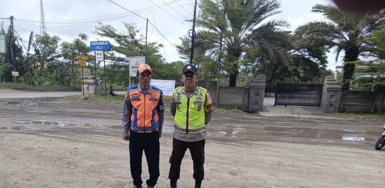 Bhabinkamtibmas dan Dishub Laksanakan Gatur Lalin sore hari Di Jalan Raya PT MSJ Bojonegara