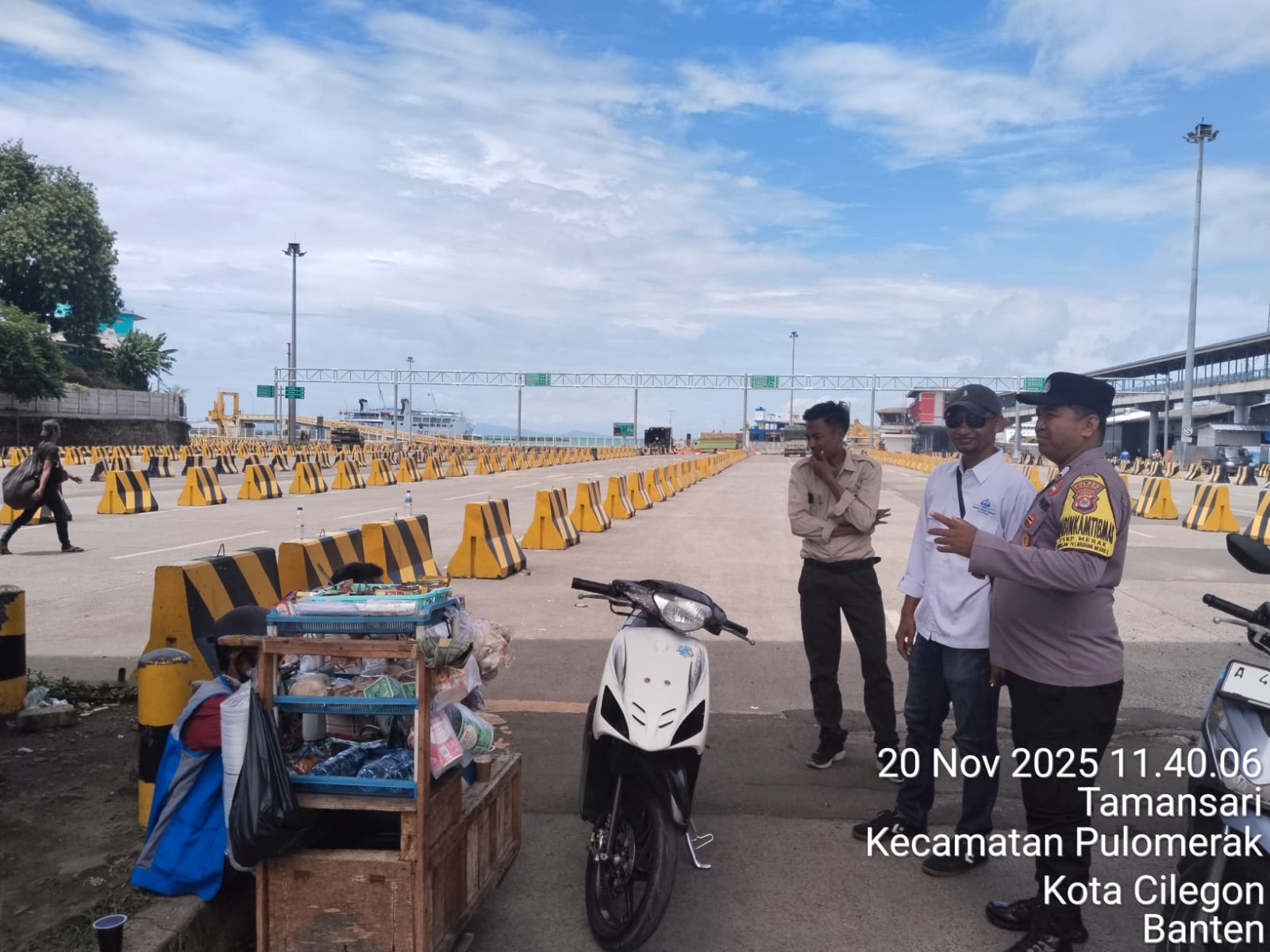 Cilegon - Personel Polsek Kskp Merak Polres Cilegon Polda Banten melaksanakan sambang dan patroli kawasan pelabuhan merak dalam rangka menjaga Harkamtibmas di Kawasan Pelabuhan Merak, Kamis (20/11/2025).
