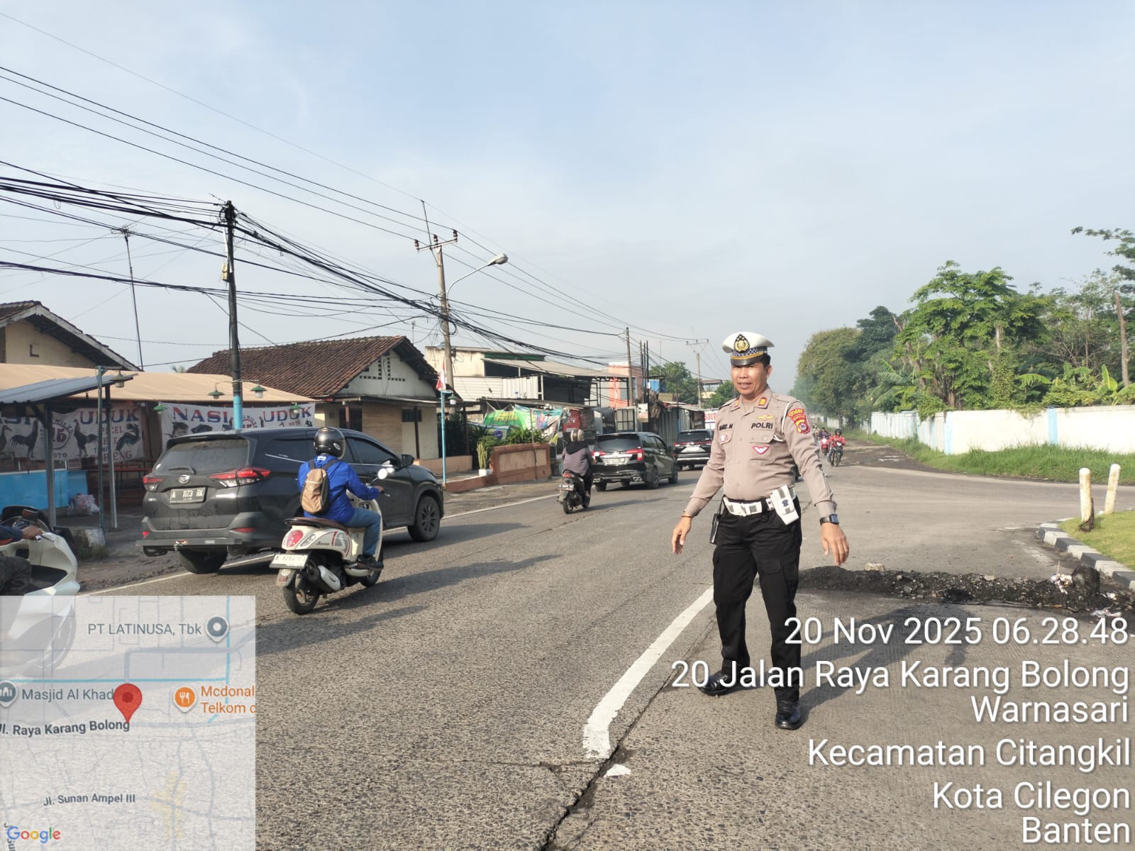 Cilegon - Dalam Mewujudkan Aksi Nyata Pelayanan Kepada Masyarakat,Personil Polsek Ciwandan Polres Cilegon Polda Banten Laksanakan Strong Poin Pengaturan Lalu-lintas, Kamis (20/11/2025).