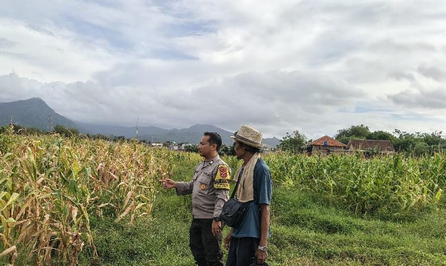 Anggota Bhabinkamtibmas Polsek Anyar Cek Perkembangan Lahan Tanaman Jagung