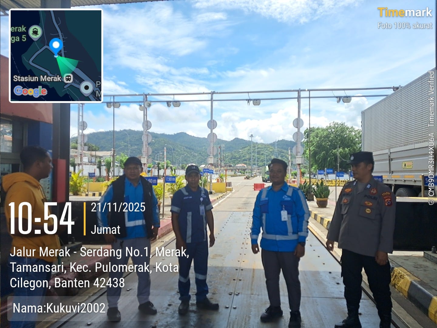 Cilegon - Personel Polsek Kskp Merak Polres Cilegon Polda Banten melaksanakan sambang dan patroli kawasan pelabuhan merak dalam rangka menjaga Harkamtibmas di Kawasan Pelabuhan Merak, Jumat (21/11/2025).
