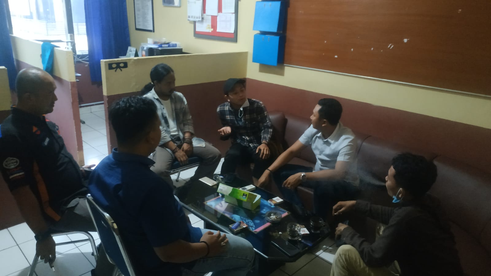 Personil sat intelkam melakukan koordinasi dengan tokoh masyarakat kelurahan randakari kec. Ciwandan kota cilegon.