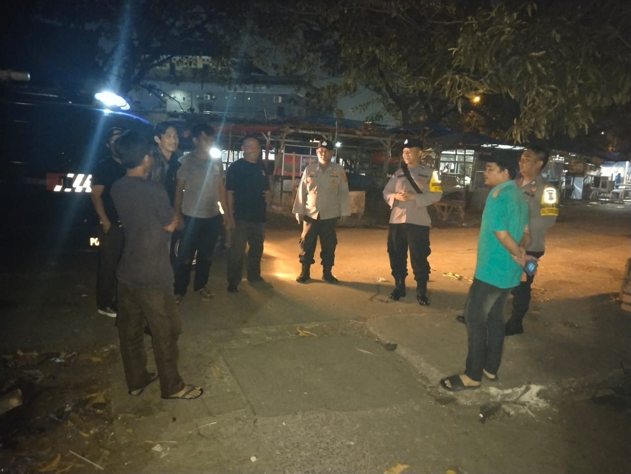 Polsek Cilegon Polres Cilegon Polda Banten sambangi ronda malam sampaikan pesan kamtibmas.